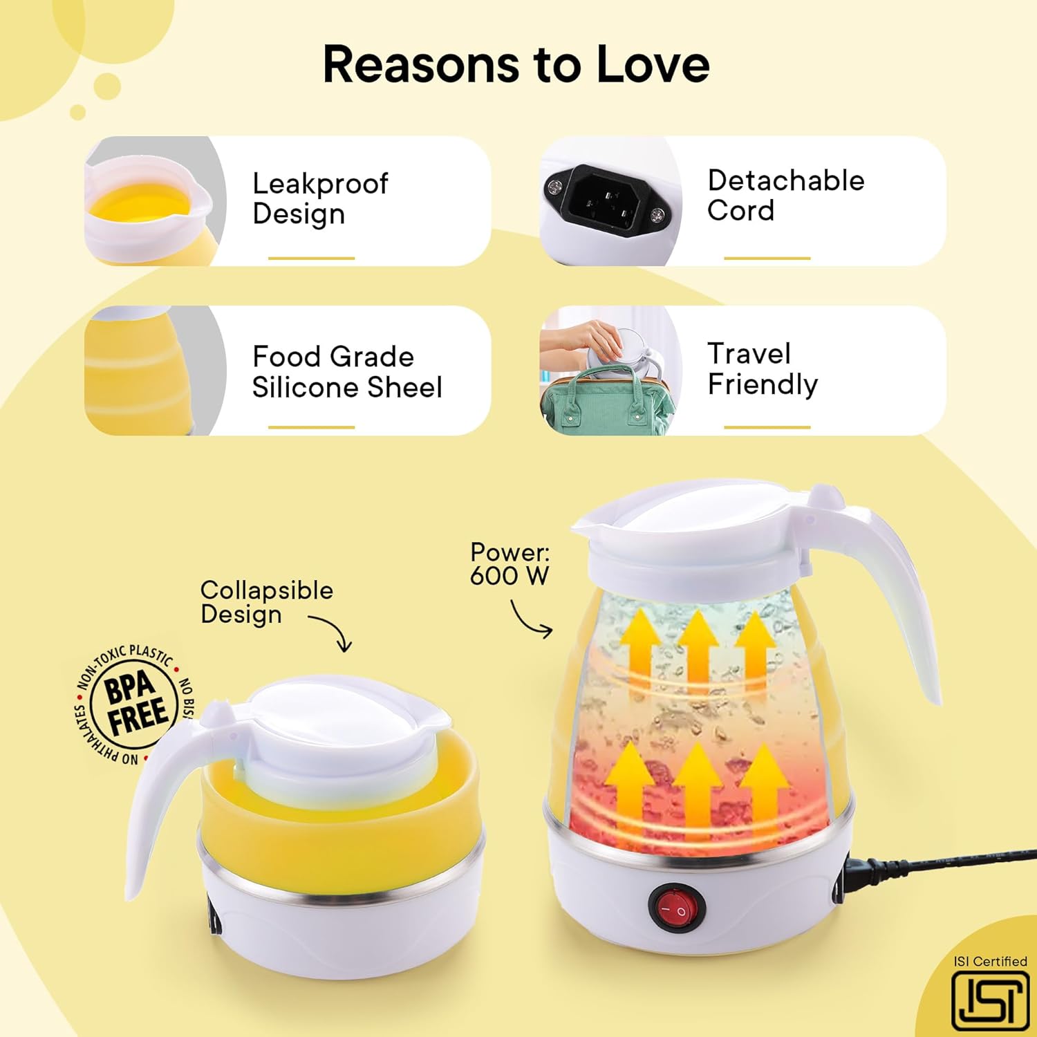 FAST HEATING: With a powerful 600W, this electric kettle ensures quick and efficient heating, making it an ideal hot water kettle for those who need instant boiling water at their fingertips.