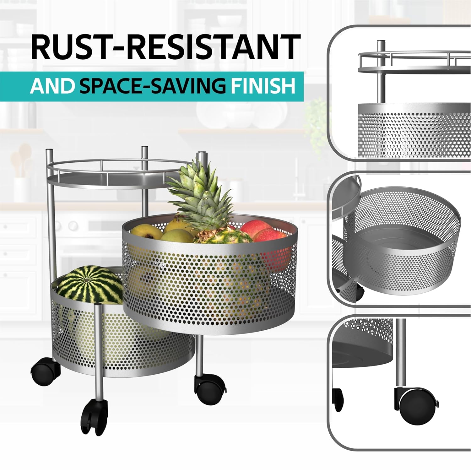 ✅ PACKAGE CONTAINS : 2 Piece Round Rotating Trolly | 2-Layer | MATERIAL : Metal | PRODUCT DIMENSION : 33 cm x 31 cm x 46 cm