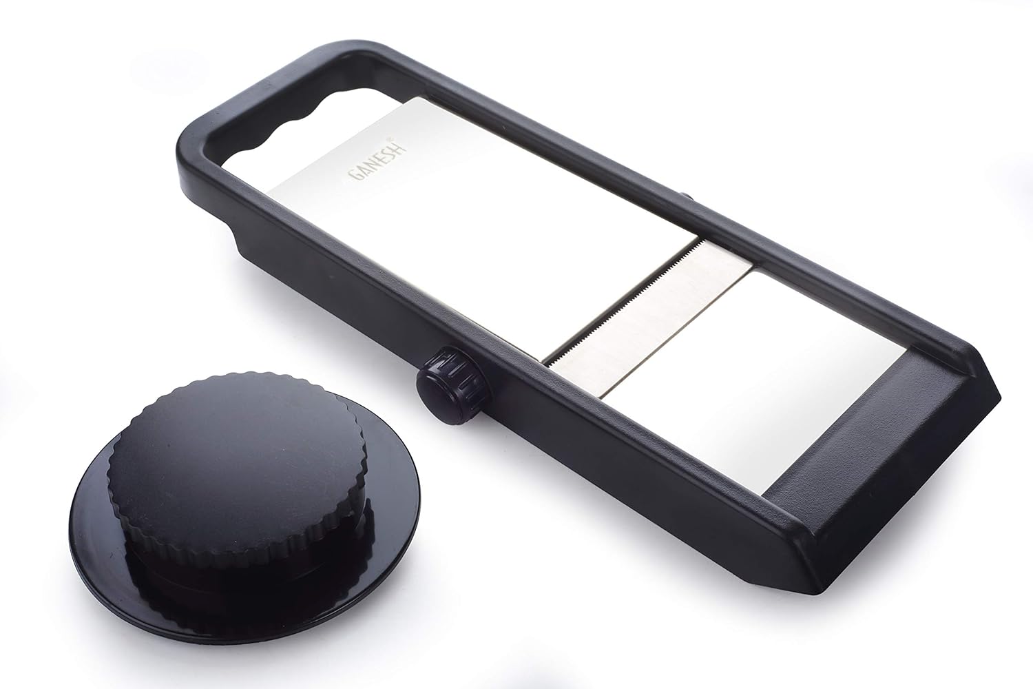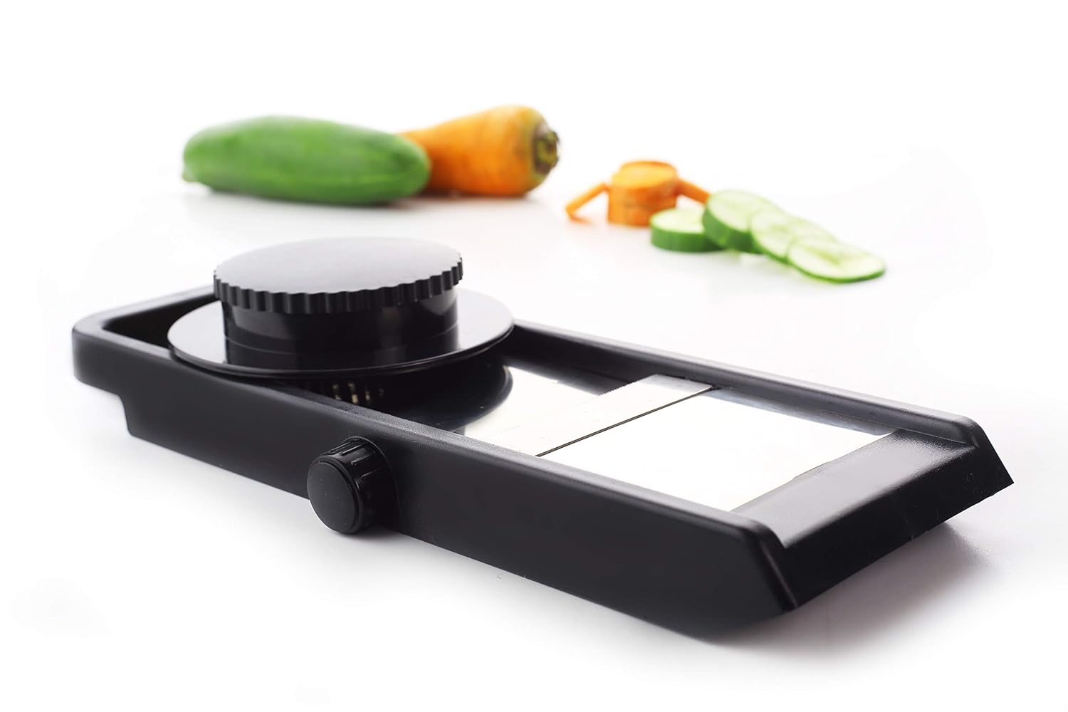 The slicer comes with an adjustable knob which cuts slices from 1mm to 5mm as required.