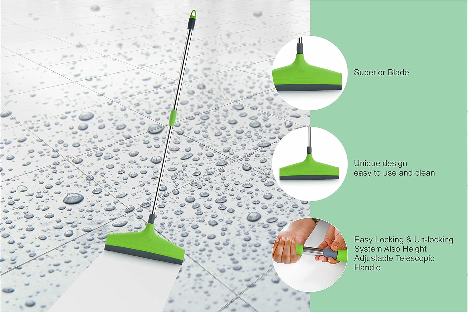 Easy locking & unlocking system also height adjustableIt’s compatible size & long handle makes swiping easierUnique angled design for reaching every corner, enables swift pull actionHelps instantly dry floors with single swipeErgonomic designStreak free wipeStrong handleUnique design easy to use and cleanSuperior blade