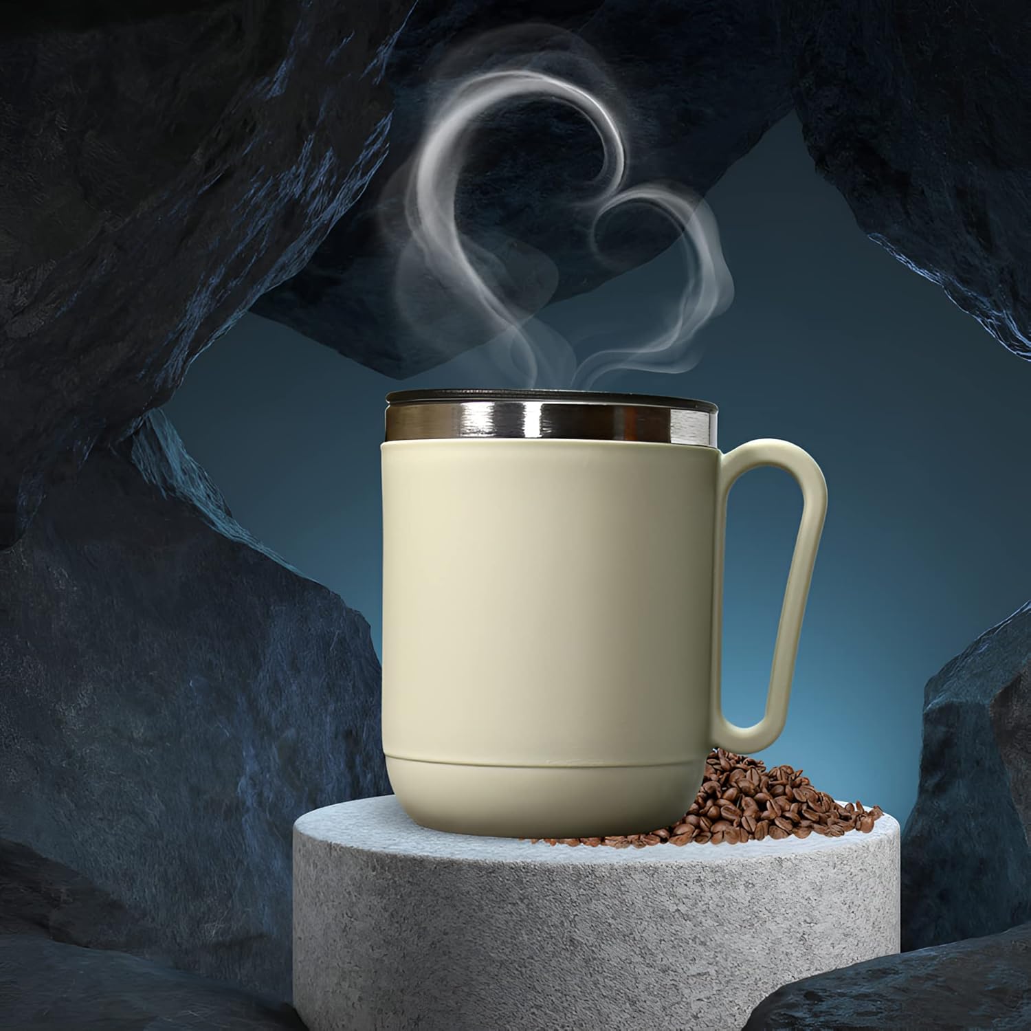 The insulated coffee mug is made from premium kitchen grade stainless steel, never rust, lead free, easy wash and unbreakable. Each cup is powder coated for a durable finish, long-lasting texture touch, not slippery, no scratching, peeling or fading.