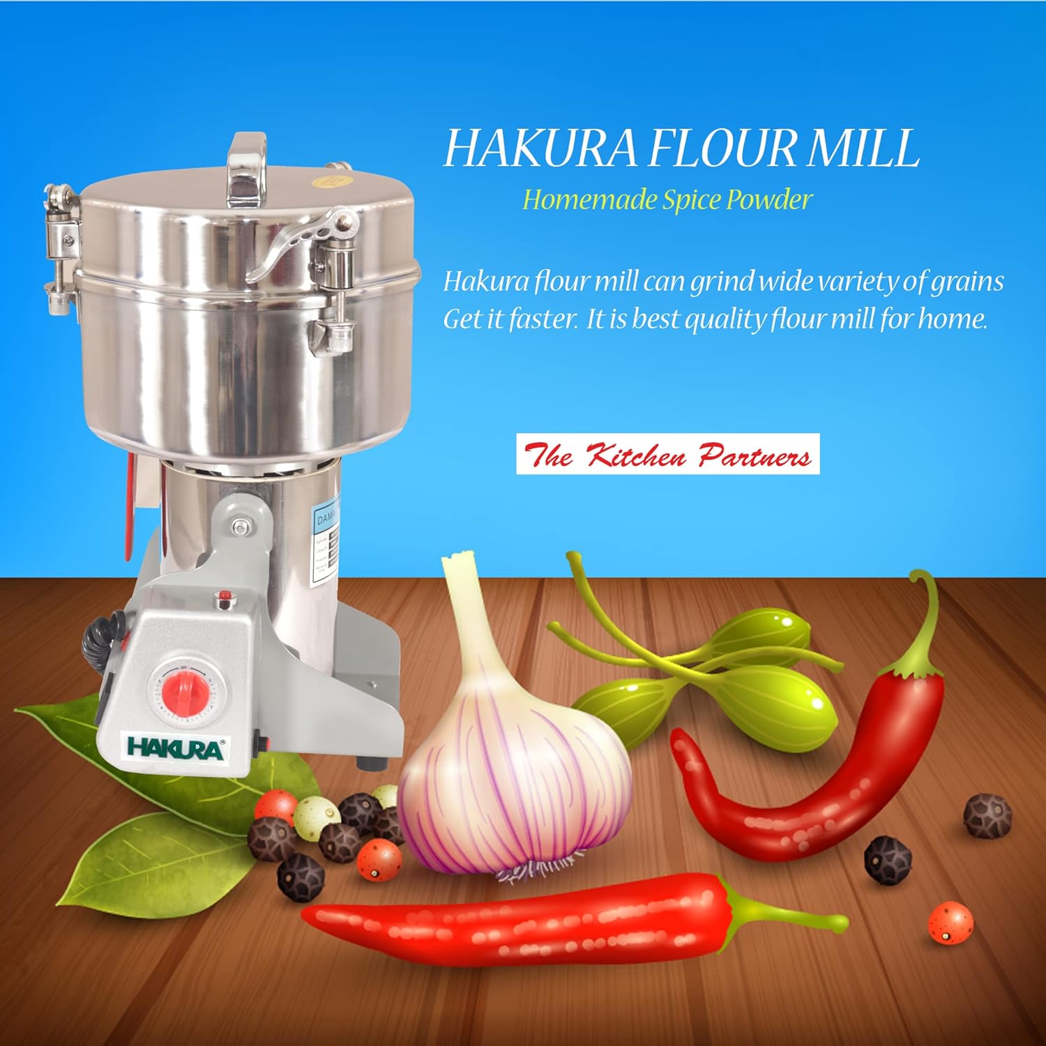 HAKURA Stainless Steel Spice Mill Machine Flour Electric Dry Masala & Herbs Grinder Mixer Swing Type for Home 2000g (Silver)