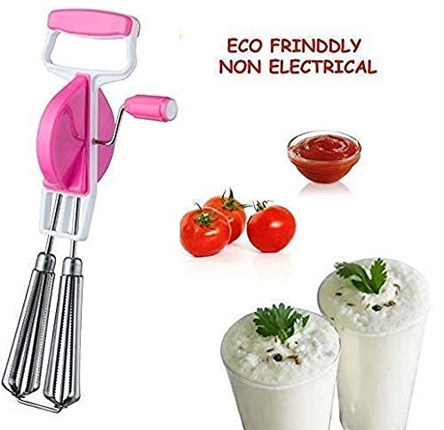 Power free hand blender (MADE IN INDIA) is, it runs without Electricity and Manual hand operated unit. – Also waviness of blades provides smooth operation while making recipes. It is useful for Beating: Cake creams and eggs; Liquidizing: Soup, Dal, baby food; Churning: Milk shake, Lassi, Butter milk, Coffee etc. – Extra durability of ABS plastic. Easy to Grip for lefties and rightist, High speed operation of SS blades, Quick to clean, Easy to store, Multi-purpose wire blades, Available in multi colors (Colors may vary). Just a press and it will start functioning with high speed rotation of blades. It has 100% Stainless steel wavy wire blades and ABS plastic material with heavy duty gear system
