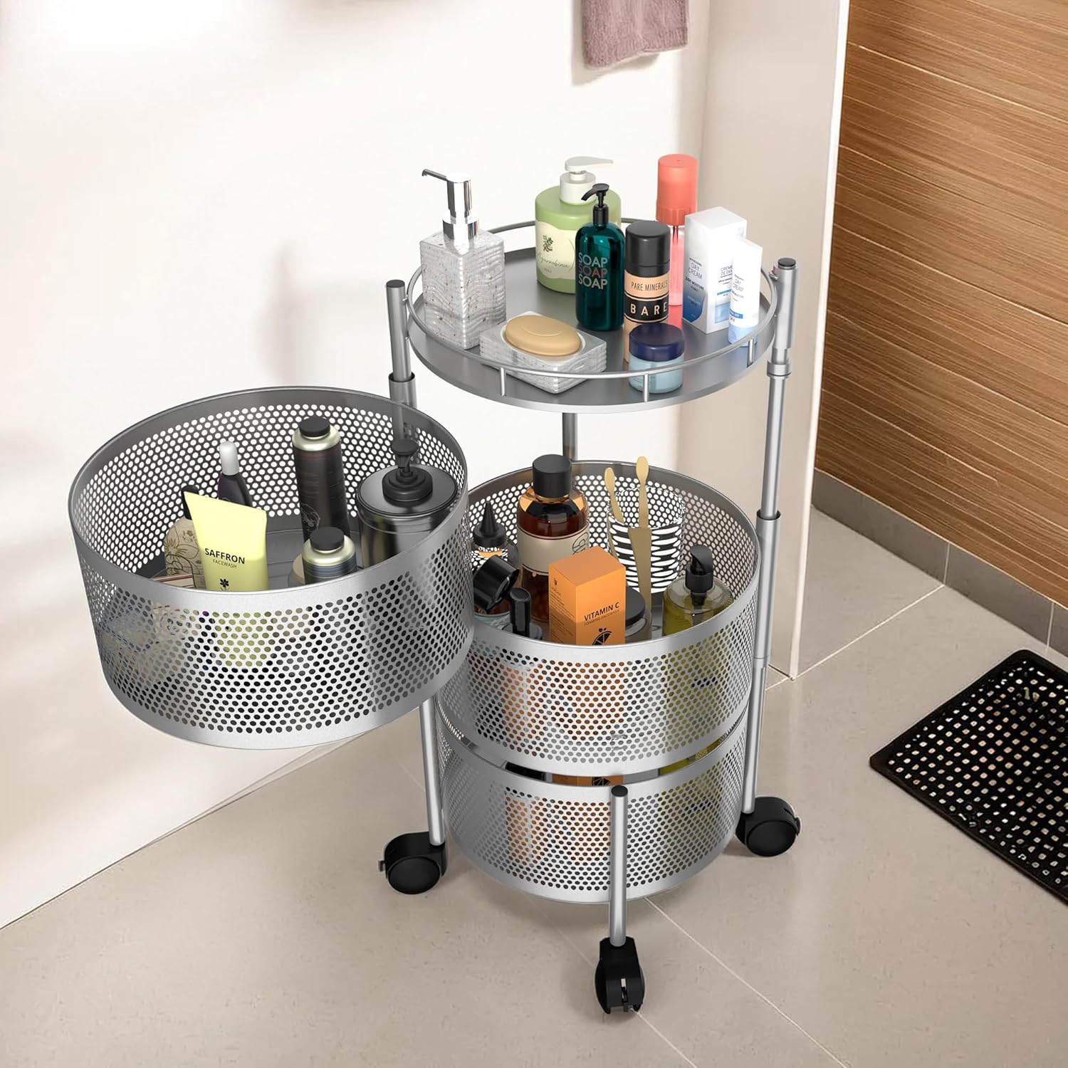 ✅ PACKAGE CONTAINS : 1 Piece Round Rotating Trolly | 3-Layer | MATERIAL : Metal | PRODUCT DIMENSION : 33 cm x 31 cm x 62 cm