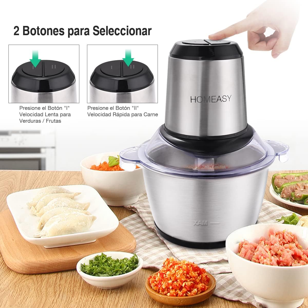 MULTIFUNCTIONAL – Homeasy electric shredder is equipped with 4 stainless steel blades and 2 speed settings to choose from. You can chop and grind various ingredients such as onions, meat, ham, garlic, onions, small herbs.