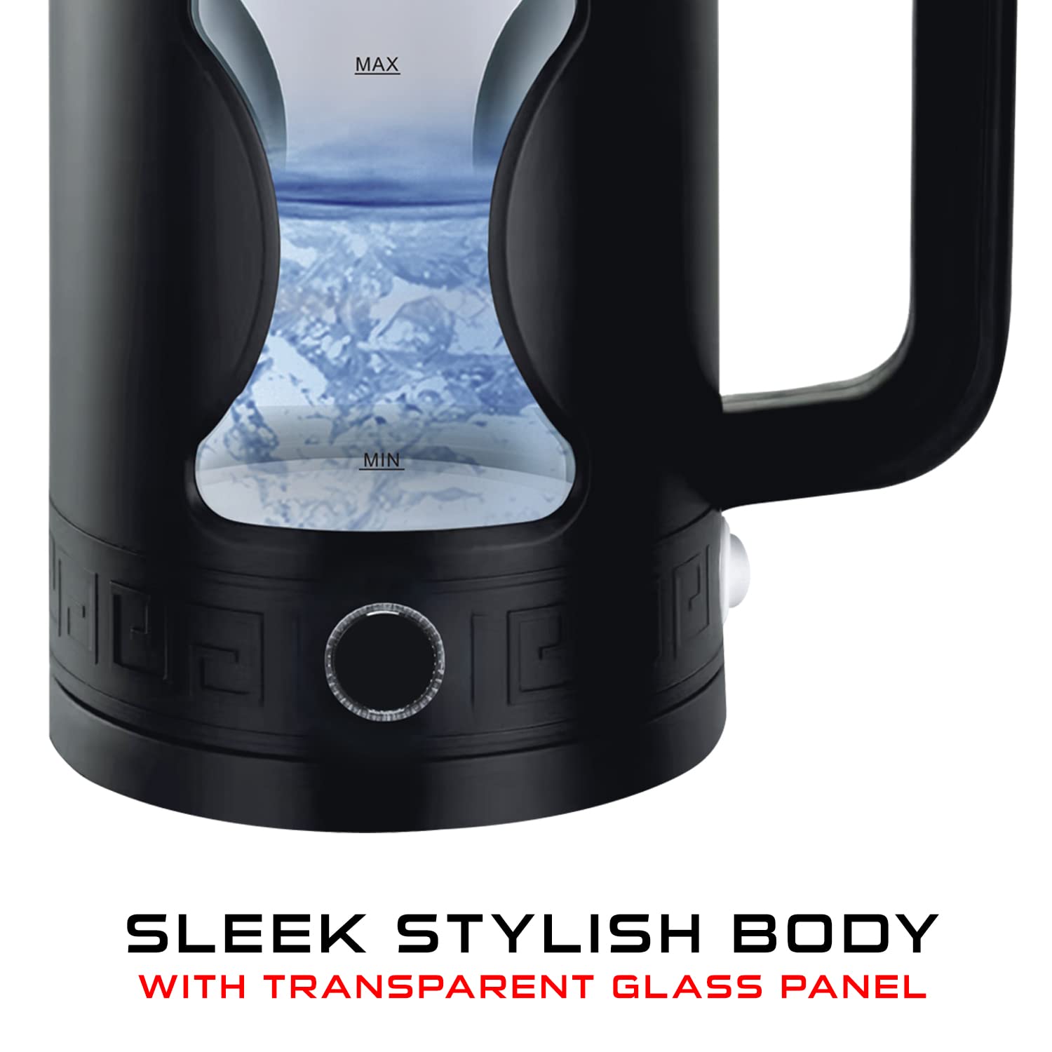 iBELL glass kettle water boils inside high quality heat resistant borosilicate clear glass which has very high temperature resistance up to 500°C. There is blue LED lighting strip inside glass pot which gives blue color to water and make boiling look visually very beautiful. The outer body of kettle is made from high quality plastic which is wear resistant and corrosion resistant. Easy opening, easy filling and easy cleaning make it easy to use device. 1.8 litre volume is good enough to boil high volume of water to serve 5-6 people. It has very high quality thermostat which has accurate temperature control and lasting durability. Kettle also has boil dry & overheat protection. It has 360° cordless stainless steel pirouette base, for easier handling and it has hidden heating element NOTE: ONLY BOIL WATER DO NOT SWITCH ON KETTLE WHEN EMPTY. IT SHOULD HAVE MINIMUM 0.5 LITRE WATER WHEN IN USE DO NOT BOIL MILK DO NOT BOIL EGG DO NOT MAKE TEA/COFFEE INSIDE KETTLE. For making tea/coffee pour boiled water in cup and then add milk, sugar, tea/coffee powder in cup DO NOT MAKE MAGGI OR ANY NOODLE INSIDE KETTLE. For making noodle you can pour boiled water in bowl and then add noodles and taste maker DO NOT BOIL ANY LIQUID OTHER THAN WATER NEVER FILL WATER MORE THAN MAX LIMIT OF 1.8 LITER. IT CAN DAMAGE KETTLE AND CAN BE DANGEROUS