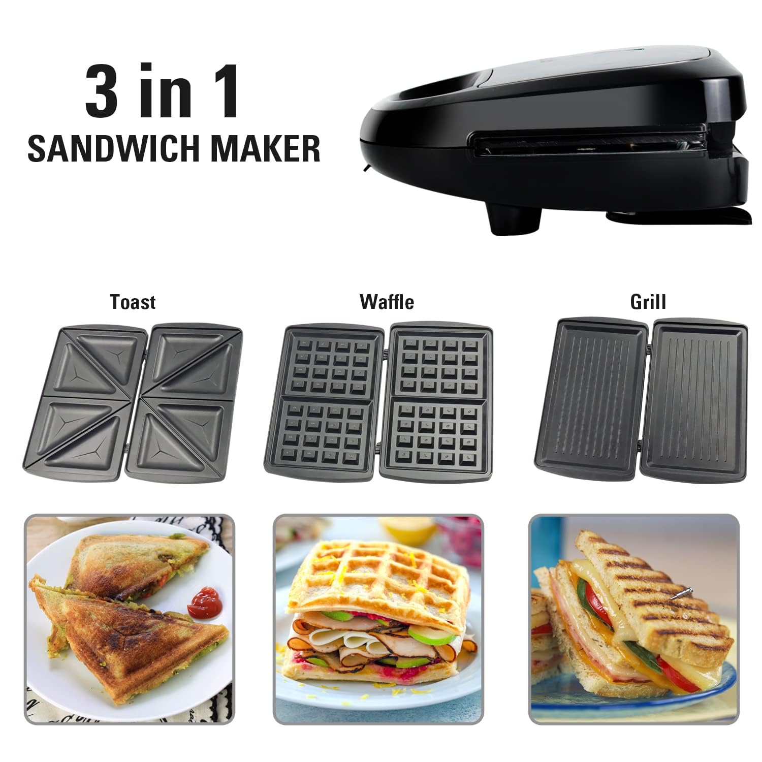 3 Different Plates for Sandwich, Waffles & Grill | Non-Stick Sandwich Plates