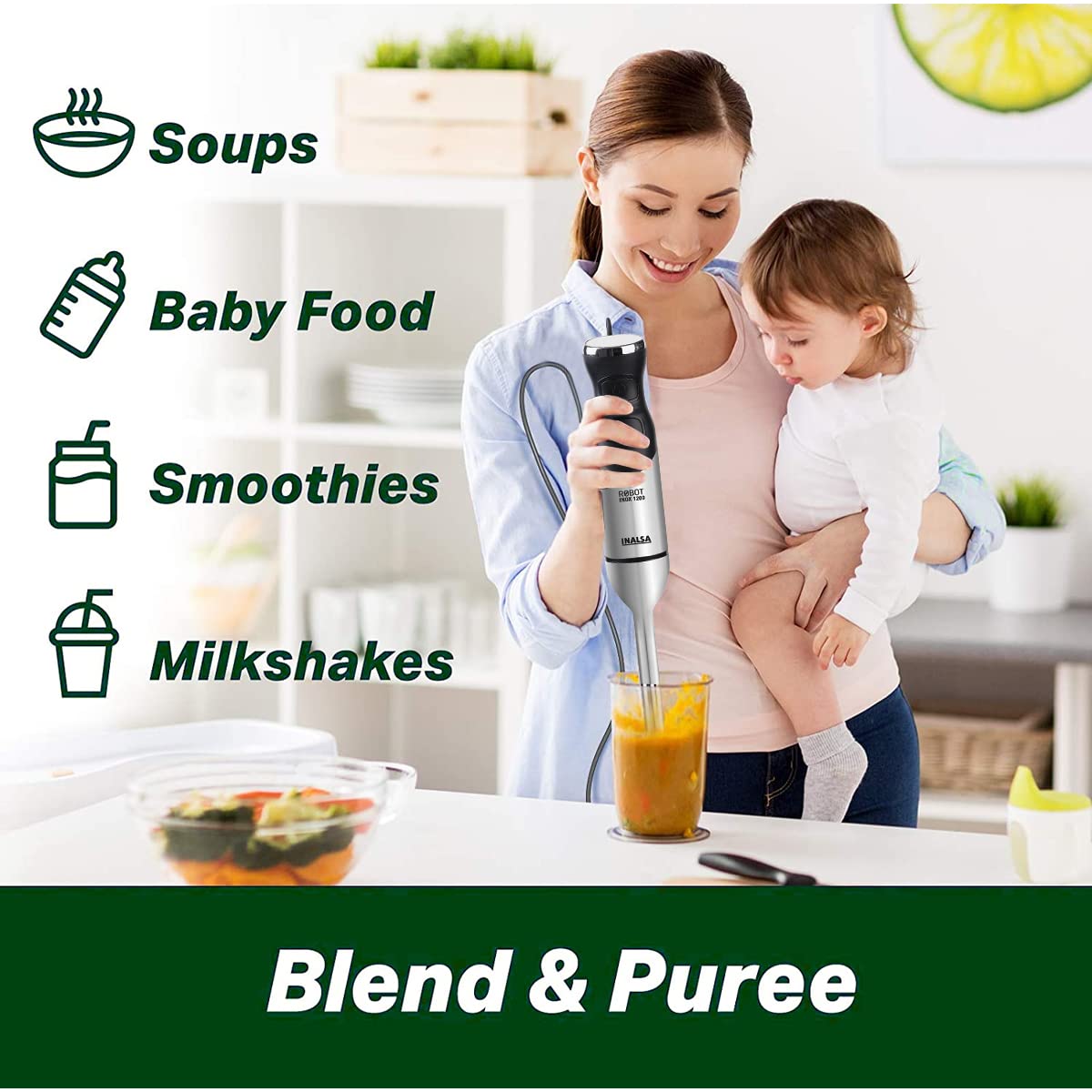 SCIENTIFIC & PROFESSIONAL DESIGN: INALSA Stainless steel hand blender has advanced noise reduction technology to avoid discomfort caused by excessive noise. No toxic chemicals will be released during food processing with our BPA free containers.