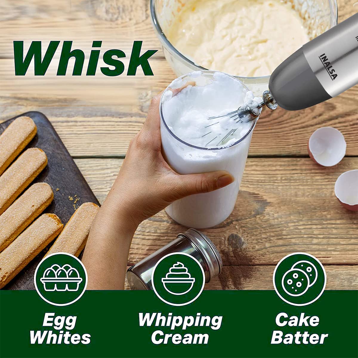 EASY TO USE & CLEAN: INALSA Hand blender has a detachable design and can be easily switched between attachments, just need to combine the accessories with this stainless-steel body. Detachable design makes your immersion blender easy to clean and store.