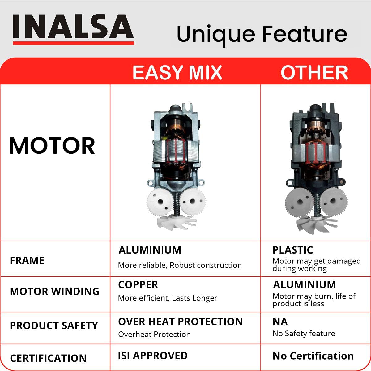 Half the mixing effort: hand mixer blender Easy Mix has a powerful motor that provides powerful processing & at the same time is energy saving hand blender. Save time & money with this appliance.best blender for the kitchen, It performs all your blending, whisking & kneading tasks fast & efficiently. Body Material : ABS