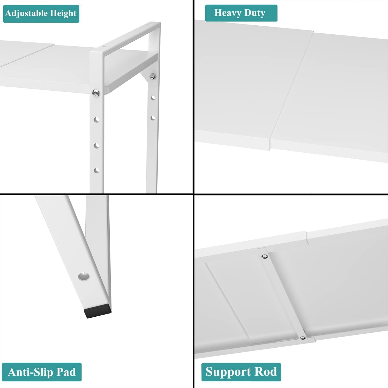 ✅【Extendable & Height Adjustable】: The microwave oven shelf (unexpanded) measures 15.7″ L x 13.3″ W x 17.1″ H. The length is extendable from 15.7” to 27.3” (40-69 cm). There are also 4 small holes on each leg in different height, thus you can adjust the rack height according to your needs. With the help of this storage stand organizer, you can saves tons of space and time by making it easier to access utensils and supplies and make your home more tidy.
