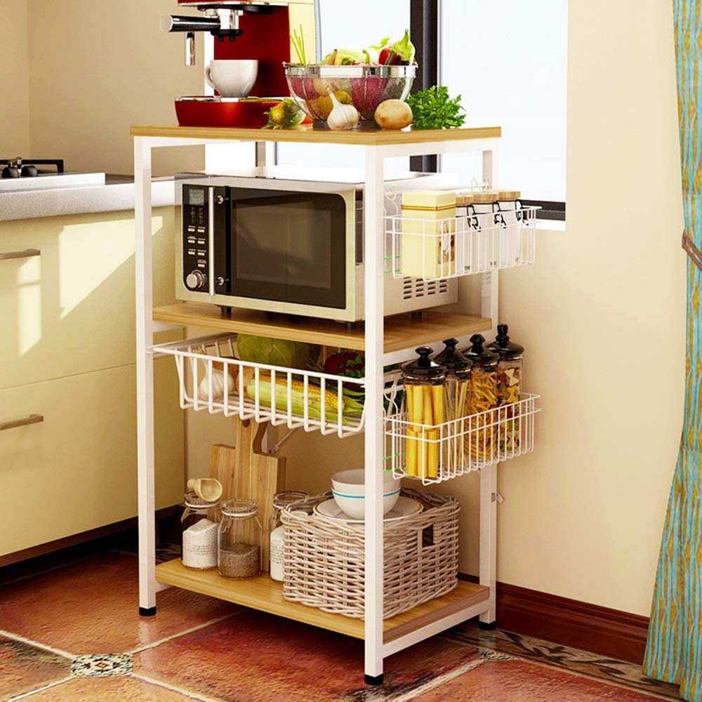 Due to the use of heavy carbon steel and iron, The Microwave Oven Rack has a strong load-bearing capacity. Seasonings, cutlery, dishes and even a microwave can be placed at on the top shelf!