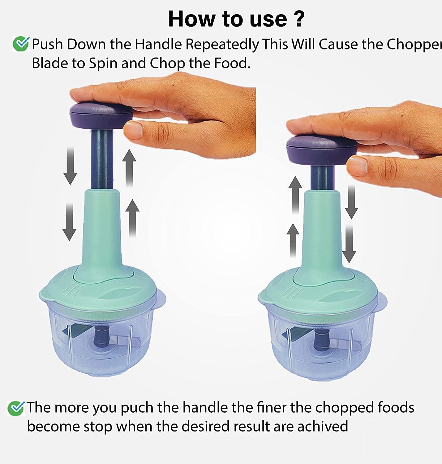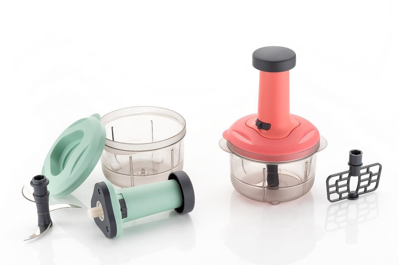 Hand Press Chopper : This Hand Press Chopper Makes Chopping Vegetables and Nuts Quick and Easy. The Sharp Stainless Steel Blade Rotates with Each Slap for Smooth, Even Cutting. It’s Great for Chopping, Grinding and Crushing Garlic, Onions, Tomatoes, Fruits, Nuts, Herbs, Vegetables Cutter and more.
