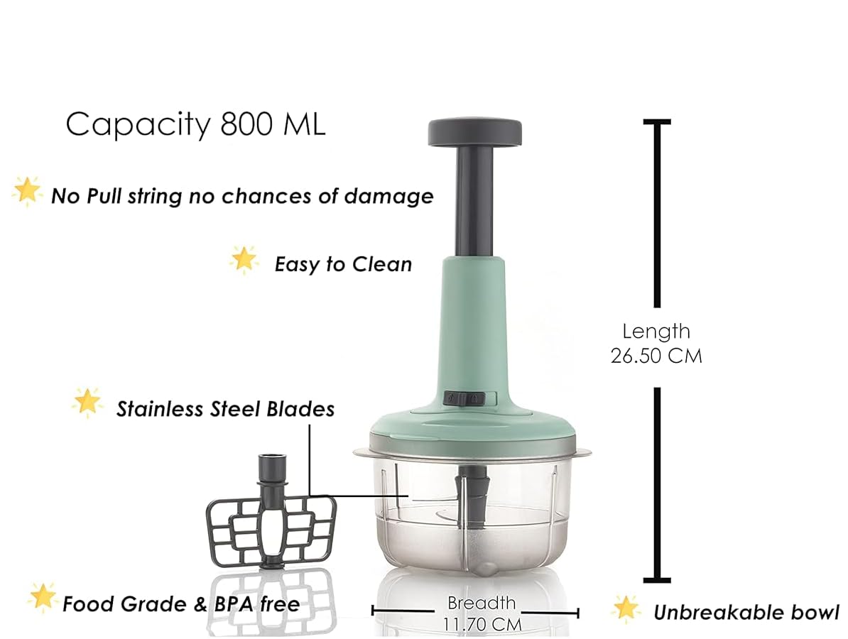 No Electricity Required: Chopper for Kitchen unlike electric food processors, this chopper operates manually, eliminating the need for electricity. Not only does this make it an eco-friendly choice, but it also allows you to use the chopper anytime, anywhere. Whether you’re in the kitchen, camping, or on a picnic, enjoy the convenience of effortless food preparation without being tethered to a power source.