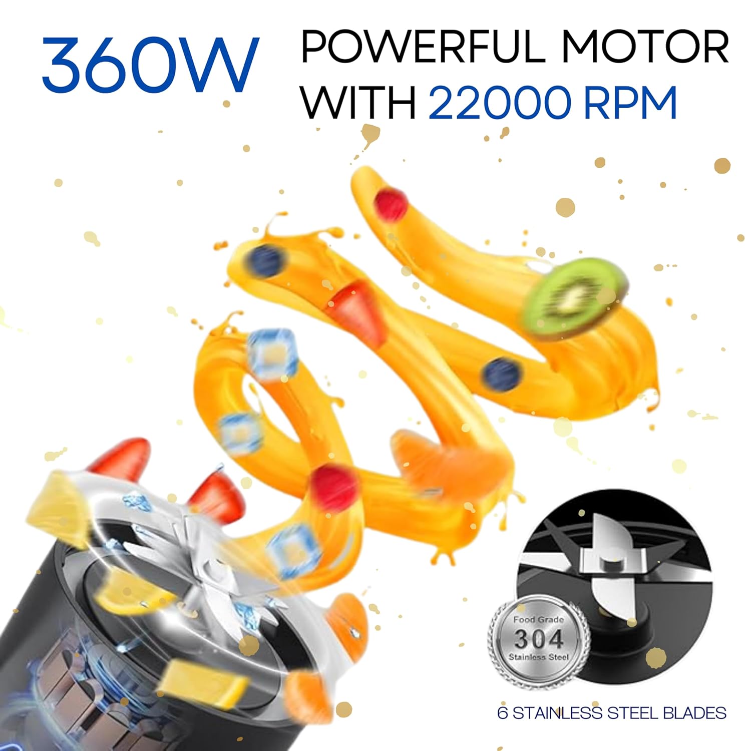 POWERFUL BLENDING PERFORMANCE: With powerful 22,000 RPM, 360 watts motor, this mixer juicer blender machine easily handles your smoothies, juices, baby food, shakes, crushes ice, frozen food, protein shake and more, in seconds.