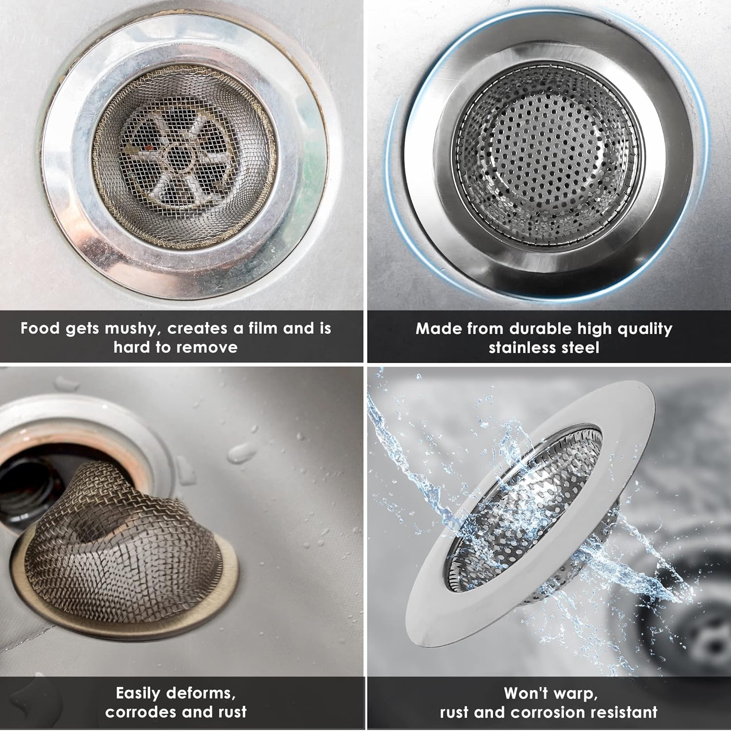 HIGH QUALITY MATERIAL – While most competitors use 201 stainless steel (which corrodes, rusts and stains your sink), Solid strainers are made with 304 stainless steel resistant to rust and corrosion. The 2.75” perforated bowl is contoured by a 2-ply metal rim to rest over sink’s drain.