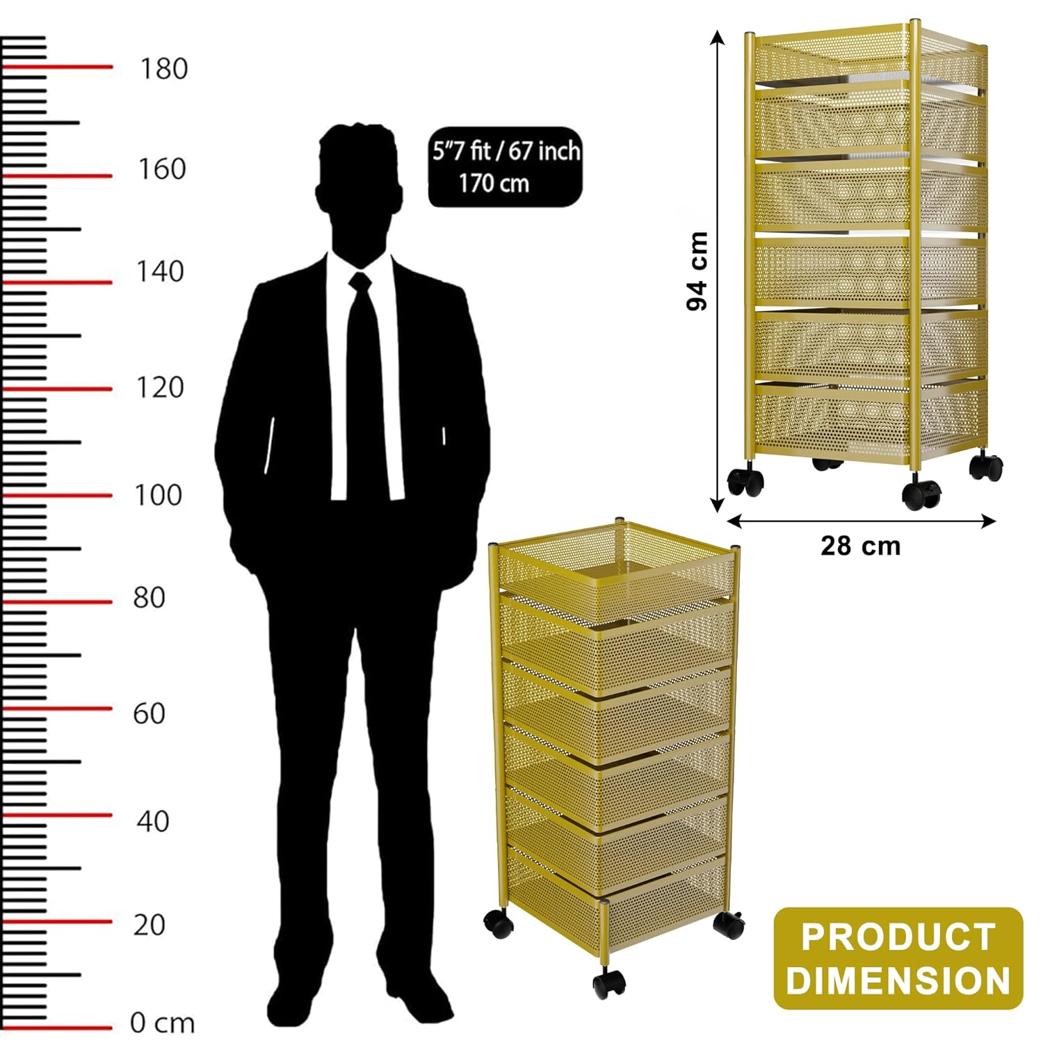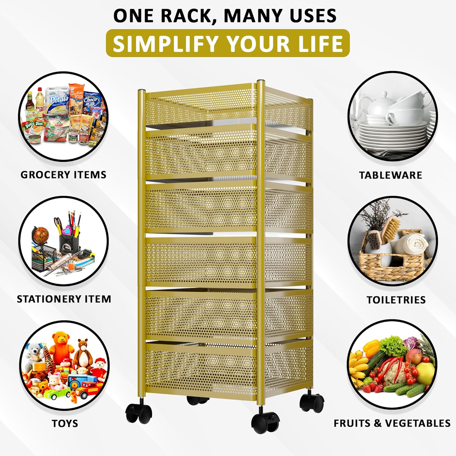 ✅ PACKAGE CONTAINS : 1 Pcs Storage Rack (5-Layer) | Square Shape – Golden | MATERIAL : Metal | PRODUCT DIMENSION : 28 cm x 28 cm x 94 cm