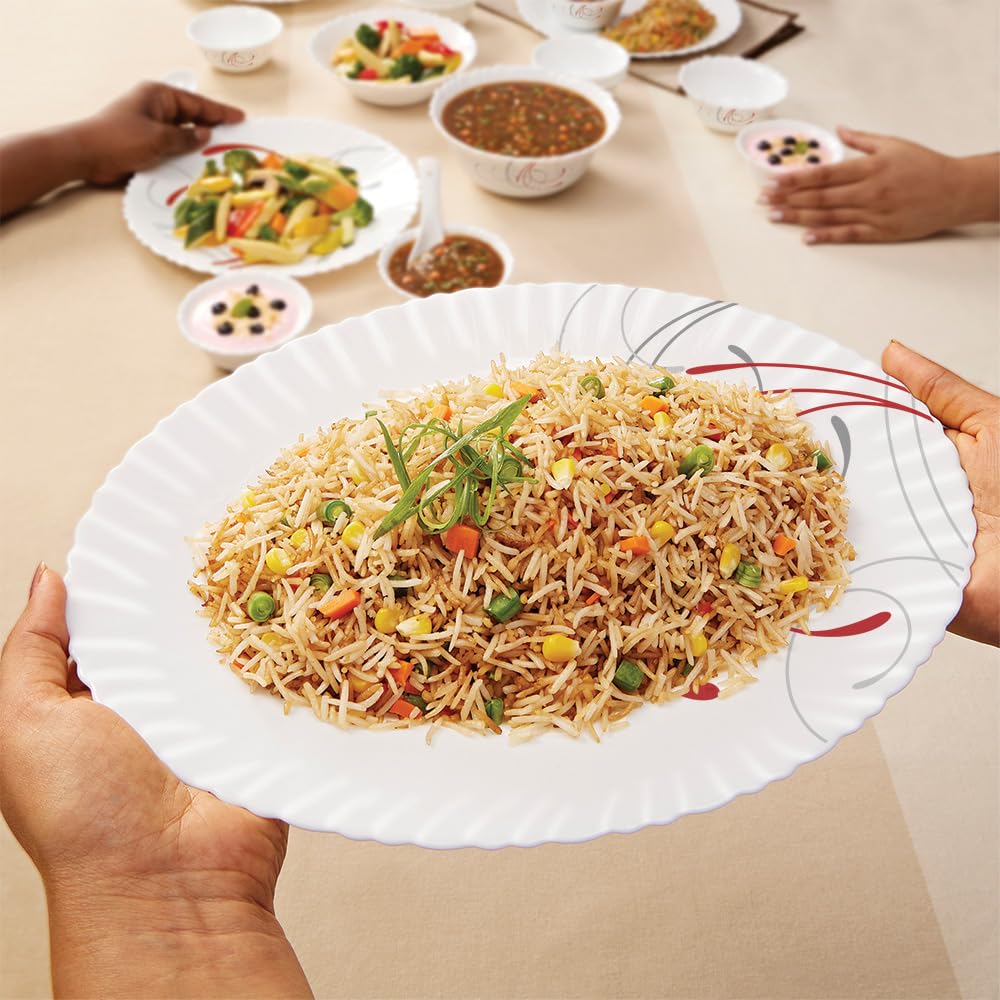 STAIN-RESISTANT & DISHWASHER-SAFE: Experience effortless cleaning with the Larah opalware dinner set. Designed to be stain-resistant, these sets ensure that no remnants of your last meal linger in the form of stains or smells. They are dishwasher-safe. Upgrade your dining experience with Larah by Borosil and enjoy hassle-free maintenance. Make every meal a delightful and pristine affair.