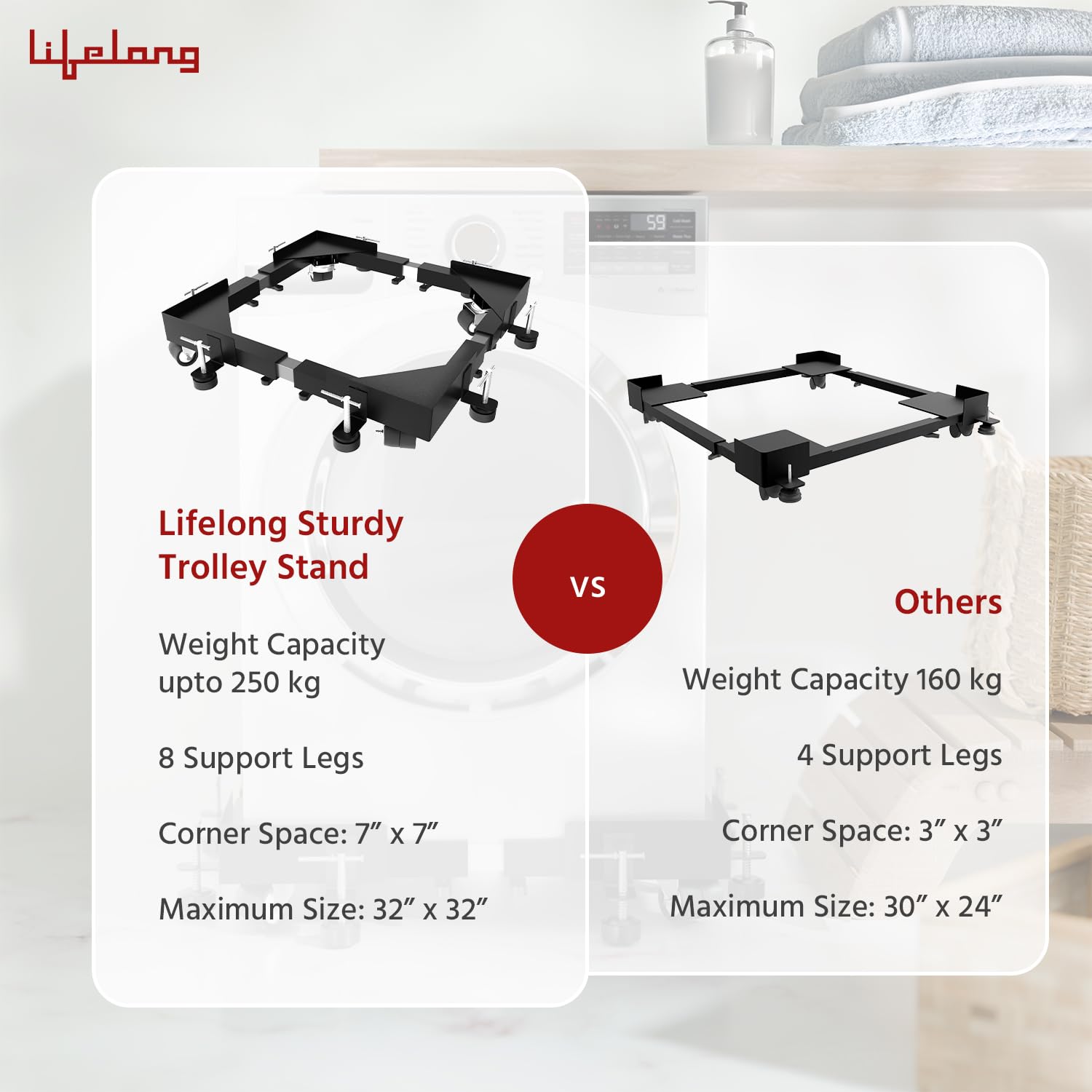 Elevate your laundry experience with the Lifelong Washing Machine Stand. This is a heavy-duty multi-purpose washing machine stand, designed to provide robust support, stability, and versatility for your washing machine or other appliances, ensuring durability and ease of use.