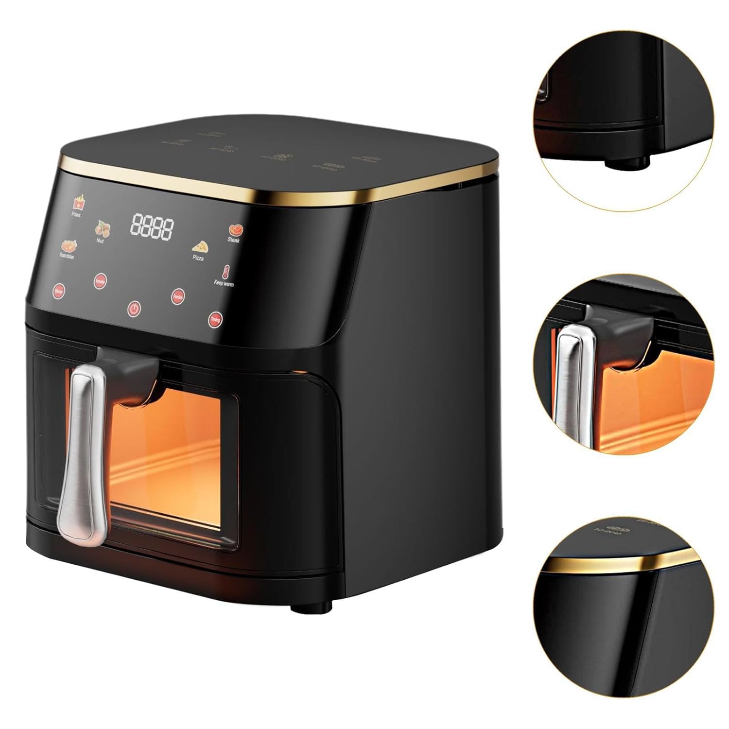 Durability : Touchscreen air fryer made of sturdy metal material, it is easy to clean and can be used for a long time. It also has a heat resistant handle for safe use