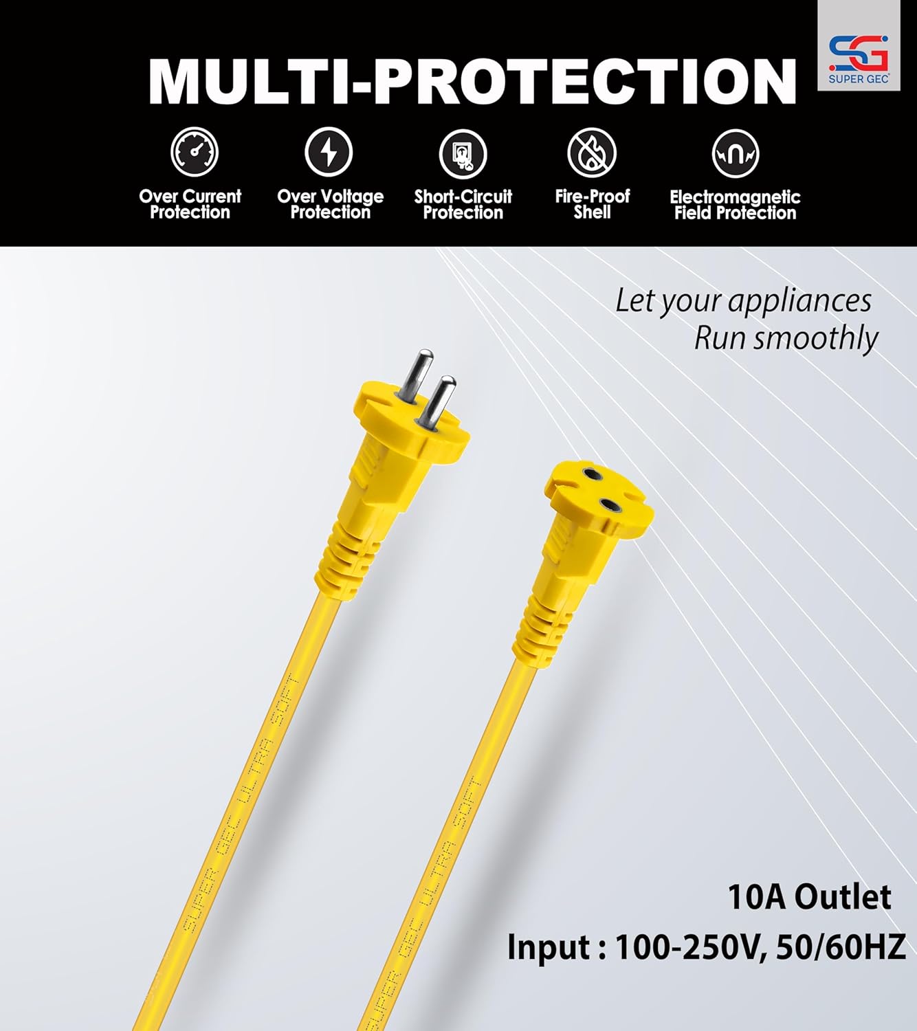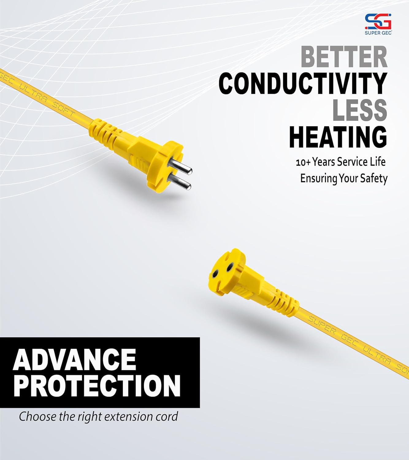 High-Conductivity Copper Wires: Featuring pure copper conductors, the Super GEC Extension Cord offers superior conductivity and minimizes power loss, ensuring your devices receive a stable and efficient power supply.