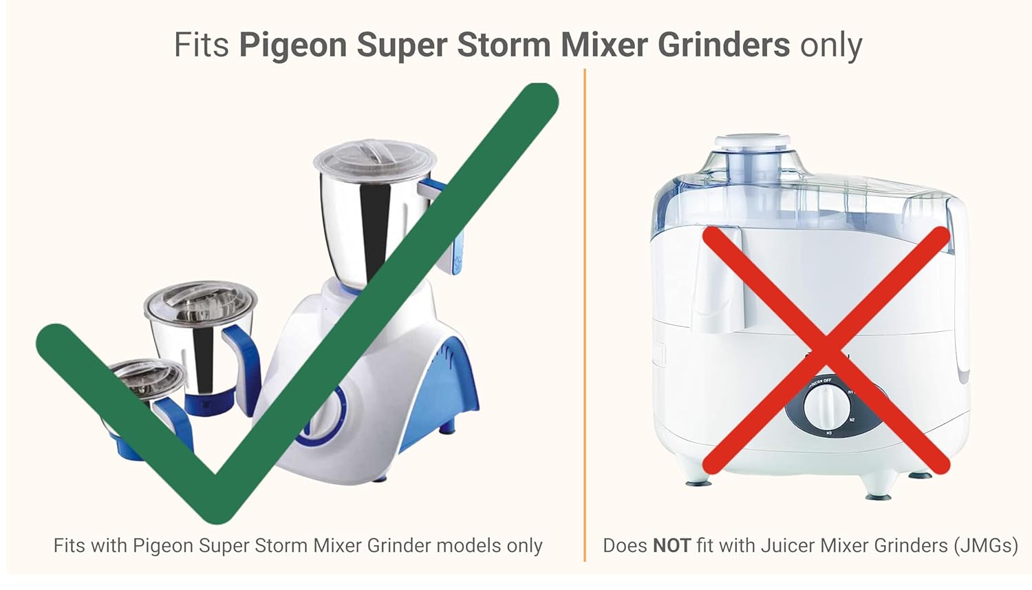 This Steel Jar has a 4-teeth coupler and 2 locks on opposite sides, and fits ONLY to Pigeon Super Storm Mixer Grinder. Before purchasing, please check the compatibility. MANISH Jars offer an exact fit for Pigeon Storm/Egnite Mixer Grinder, so you can keep using this Jar for years to come.