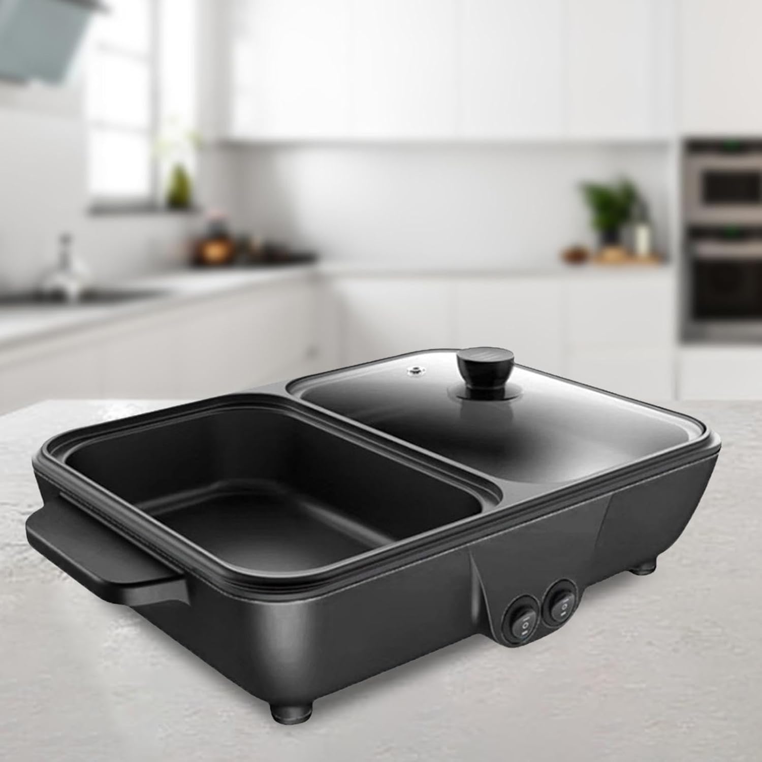 Versatile Cooking Experience: This multi functional electric shabu shabu pot with grill frying pan allows you to simultaneously prepare a variety of dishes, including BBQ, hot pot, steaming, boiling, and frying