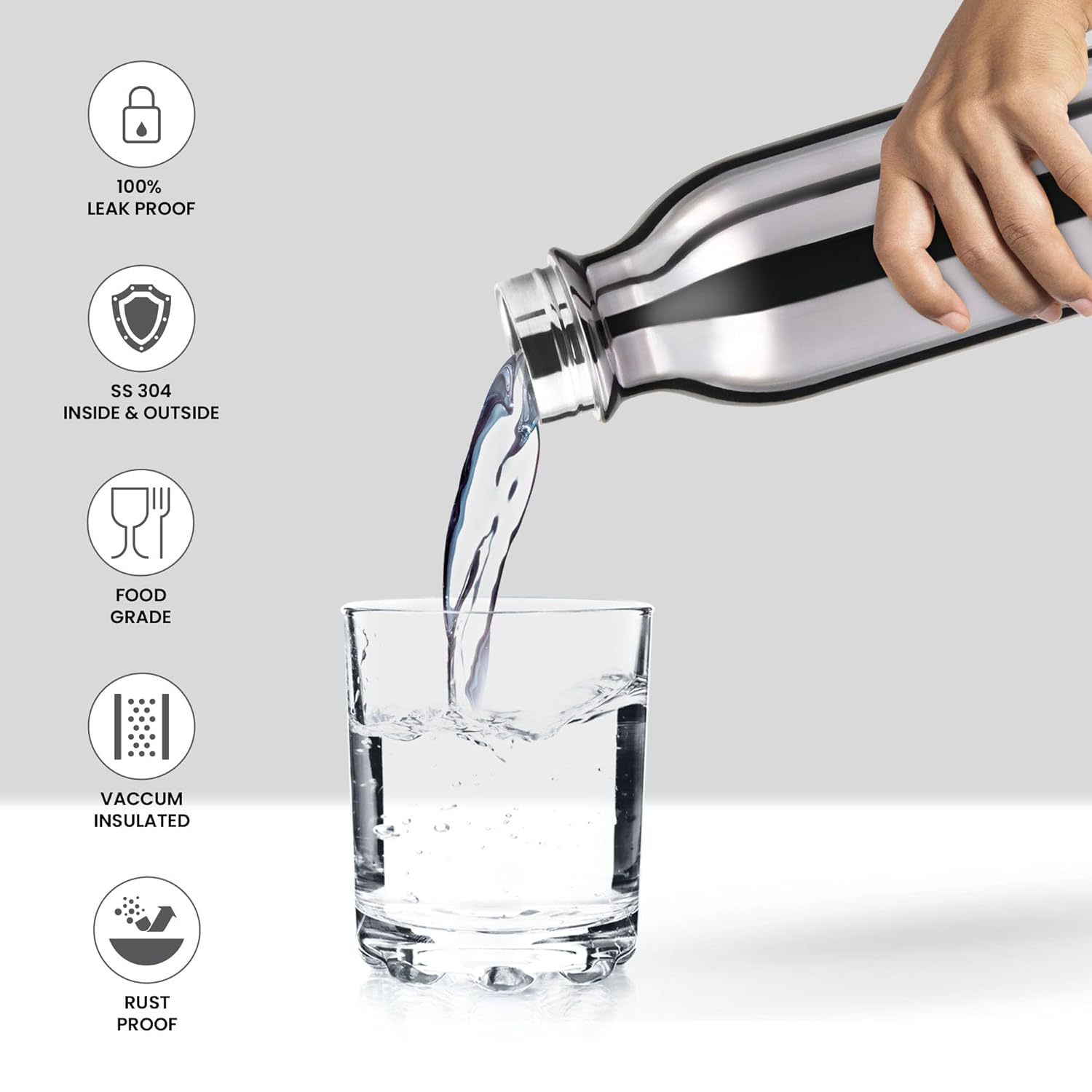 Double walled insulated water bottle is made up of a durable 18/8 stainless steel, built to withstand the demands of everyday use. Convenient size fits in the side pocket of bags which you can carry for school, trekking or office, car bottle holder etc