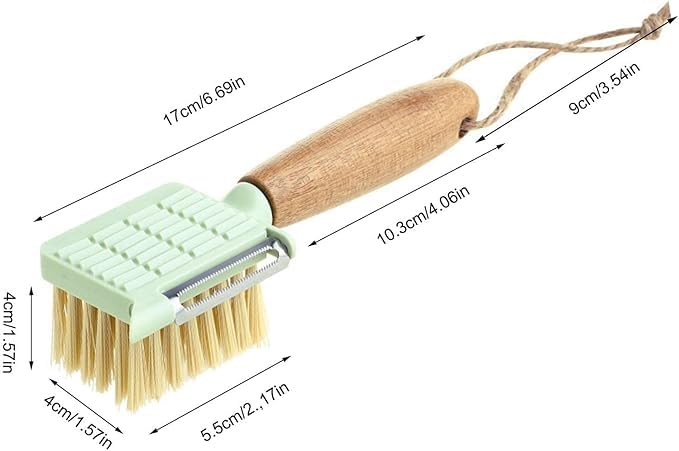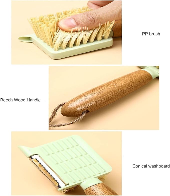 ⊁Comfortable to Hold: The Vegetable Brush and Peeler use a beech wood handle that is comfortable to hold, so you won’t feel sore when you hold it for a long time.