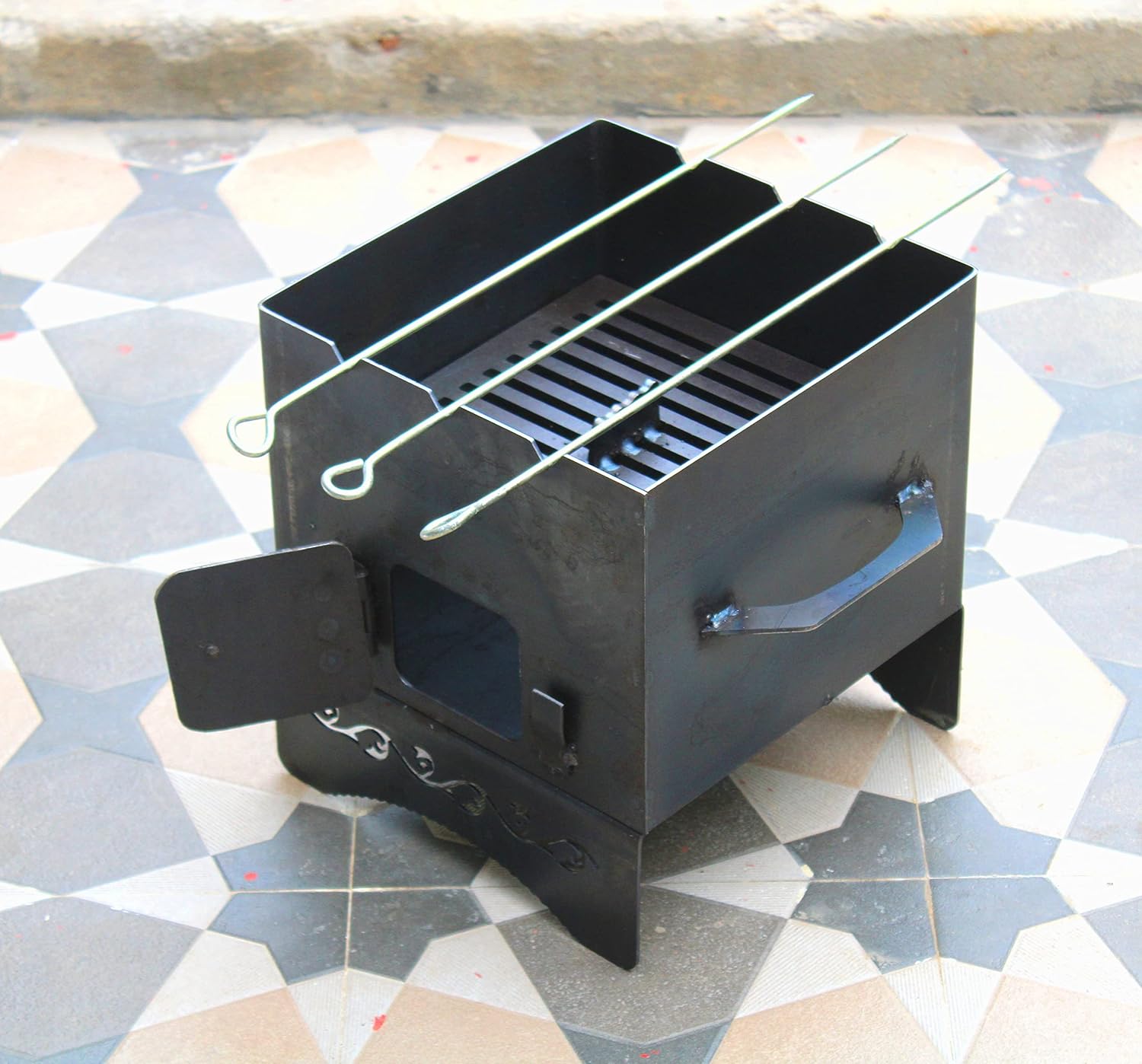 BBQ is no longer so troublesome and limited by space and equipment.Portable and lightweight folding leg design designed for easy carrying and storage. Ideal for camping, mountain climbing, picnics, tail parties, camping, trailers, parks and grills in small spaces.The best barbecue grill for you if you have been looking for a smoky, fried taste for a long time or enjoy smoky meat, the only way to achieve both is to use this simple easy charcoal barbecue grill. Just get together with all your friends or family to have such a special romantic look for cooking outdoors and enjoy the good taste of cooking with charcoal. Super perfect for a barbecue party for 3-5 people