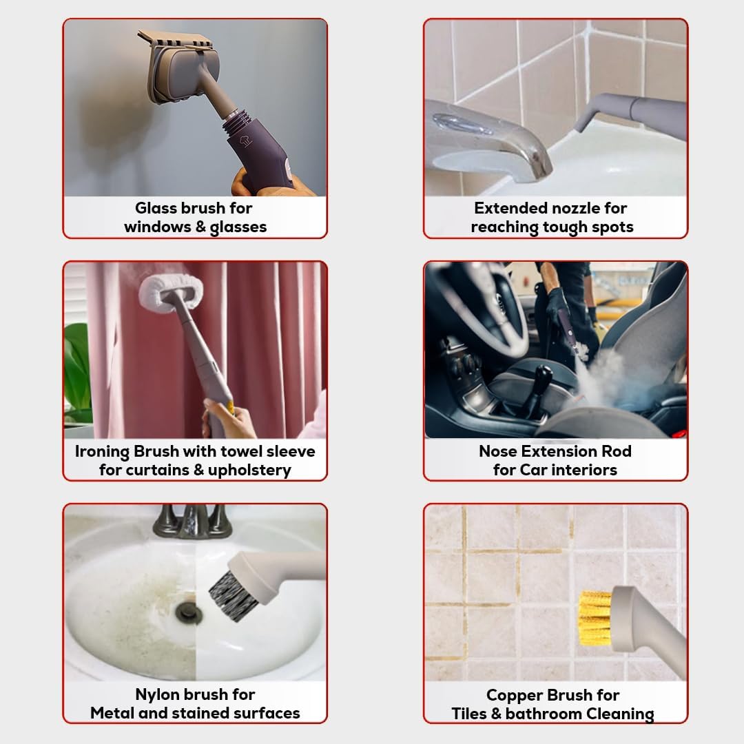 POWERFUL STEAM TECHNOLOGY: 1000 W steam cleaner harnesses the power of steam to effectively eliminate stubborn dirt, grease, and stains without the need for harsh chemical cleaners. This ensures a safer and eco-friendly cleaning.
