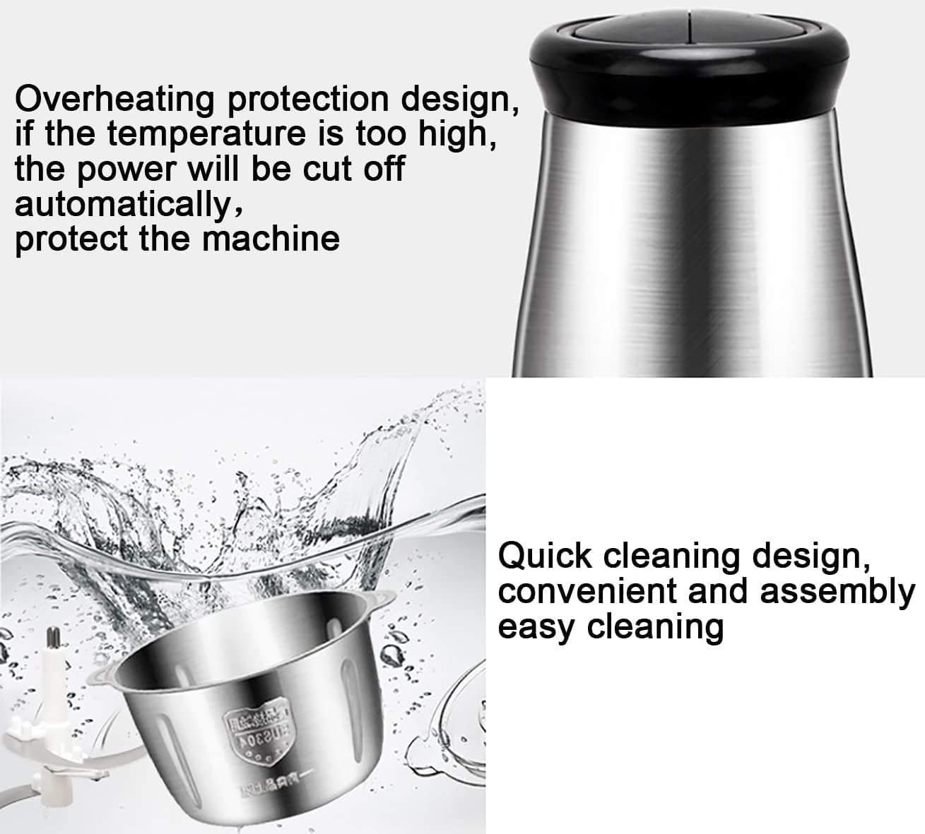 Powerful 300W Copper Motor – Ensures smooth and quick grinding with minimal effortDual-Layer Sharp Blades – Efficiently grinds meat, veggies, garlic, onions, and nuts