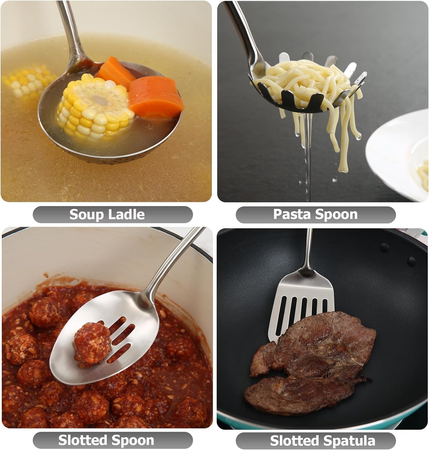 ๐๐ฎ๐ฅ๐ญ๐ข ๐๐ฌ๐: This 3-piece stainless steel cooking utensil set is ideal to any kitchen lover. You can experience the complete functionality of these premium kitchen utensils for cooking, whether youโre flipping ingredients, tasting sauces, or serving a finished meal.