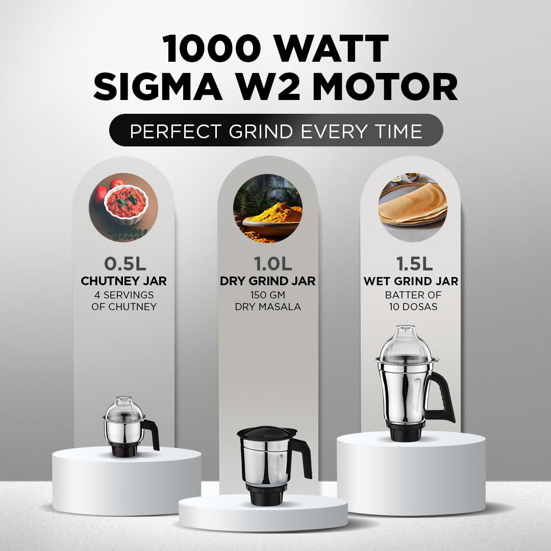 High torque SIGMA W2 1000W motor for fast & superior grinding performance.