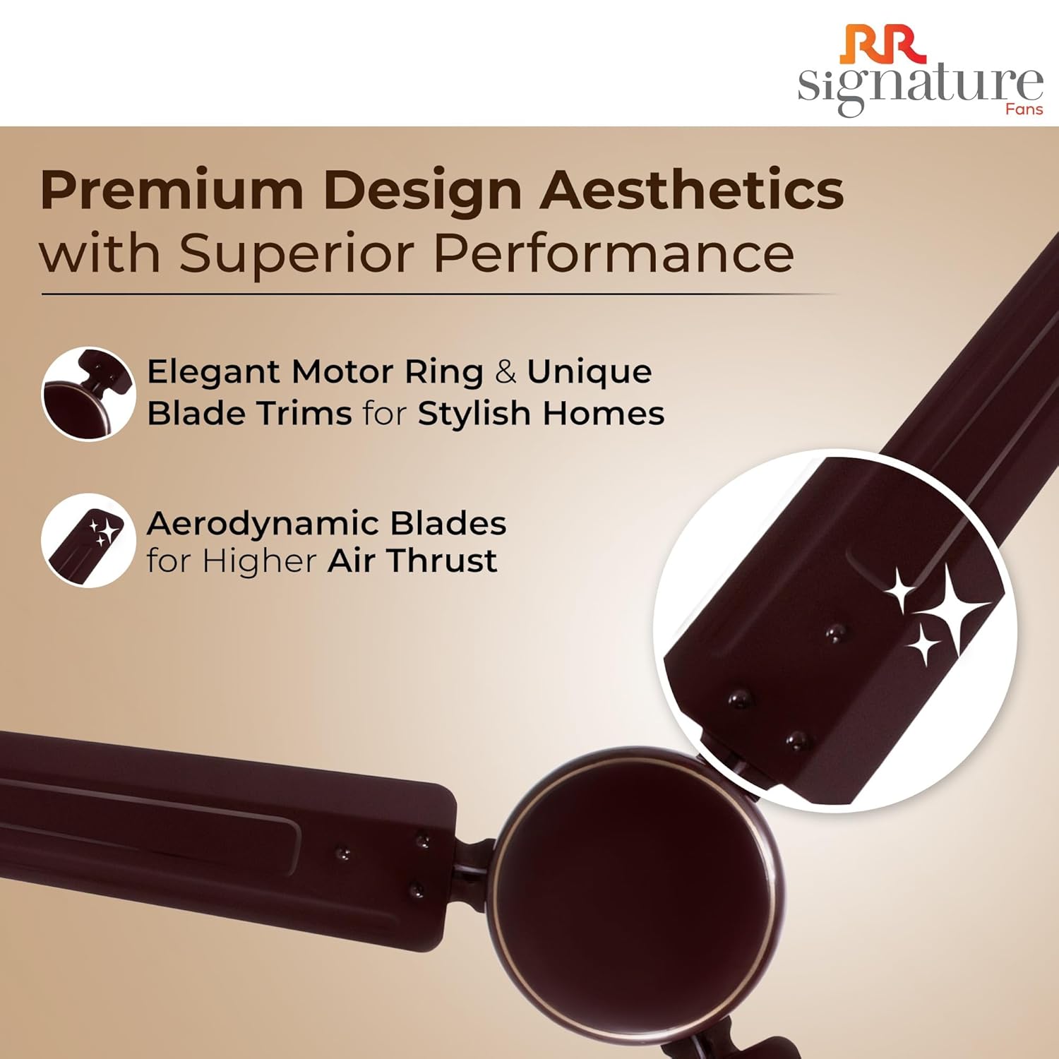 This designer ceiling fan has an attractive appearance that will go well with your home’s decor thanks to the white body and gold trim detailing,even at low voltage, ensuring exceptional performance.