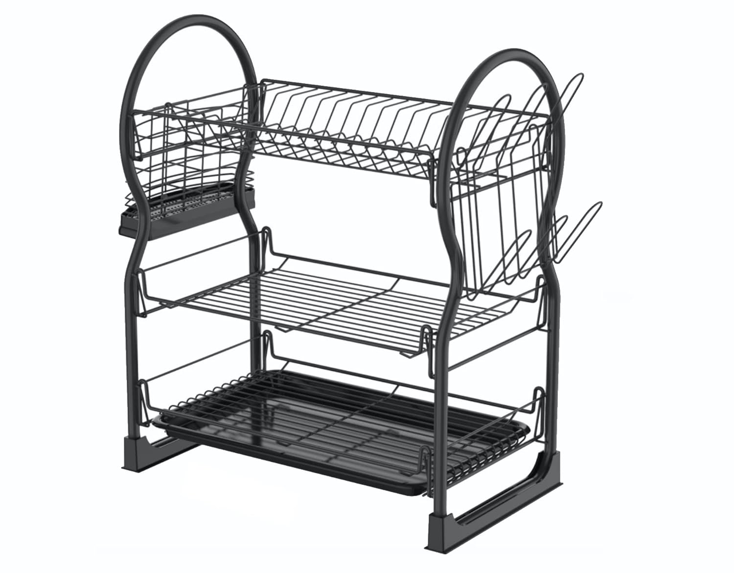 Strong & Durable – Modern design 3 tier kitchen dish drying rack is made of iron with Powder coated for stability, durability and elegance. Bottom floor has a drawer-type water tray. The drain tray has a food grade PP material, which is environmentally friendly and flexible.