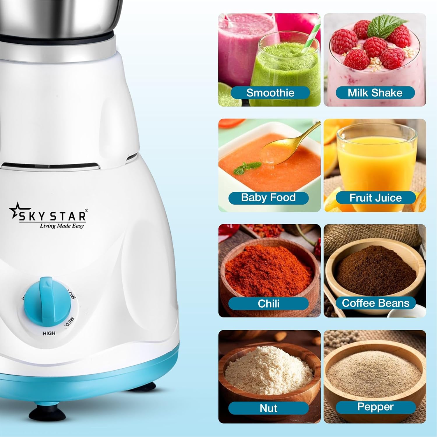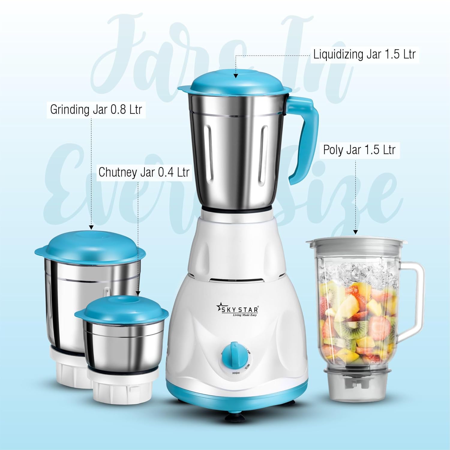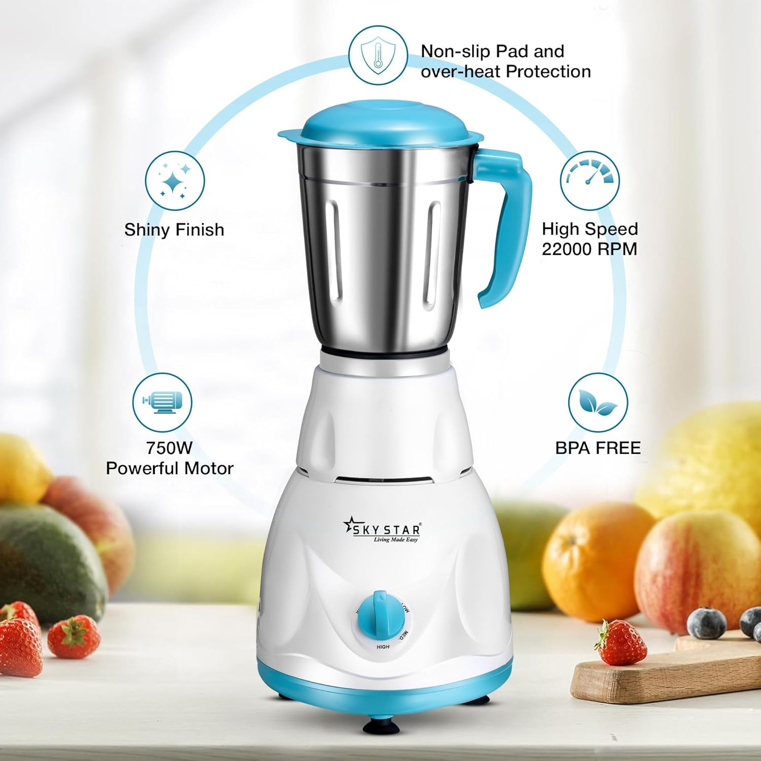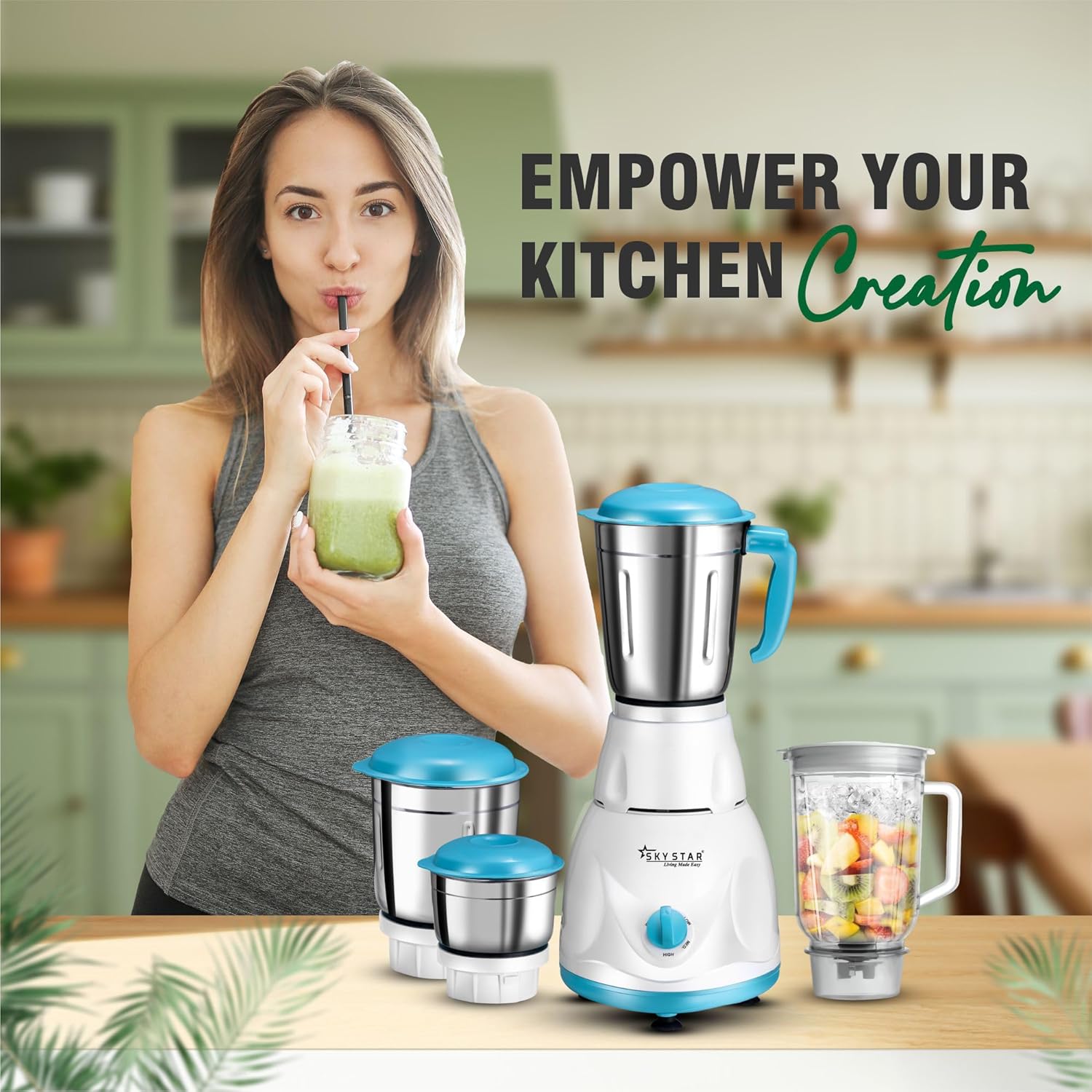 It Comes Equipped With High – Quality Stainless Steel Jars And Blades. Stainless Steel Fine Blades For Best Chopping, Grinding And Juicing.