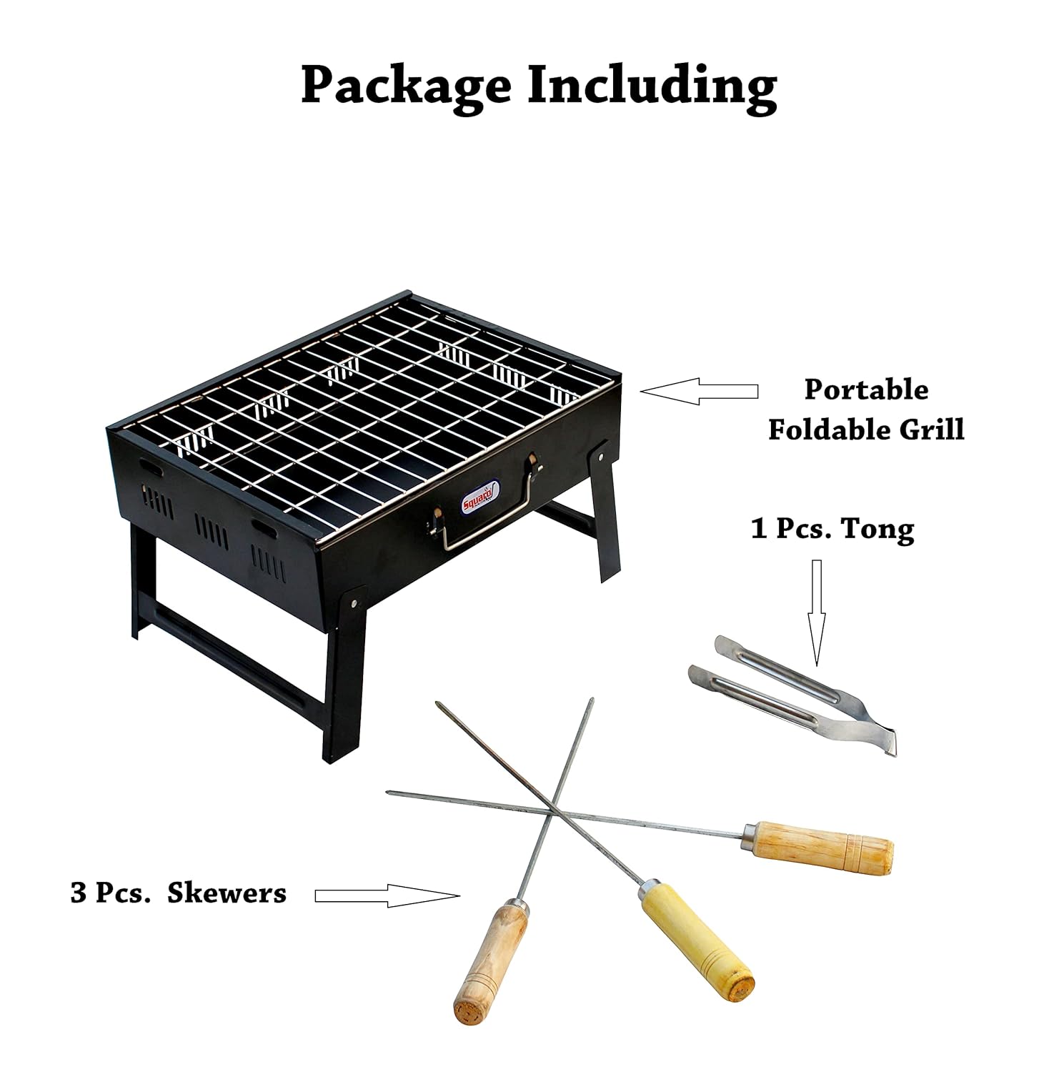 Package In : 1x Foldable Charcoal Grill With Handle, 3x Skewers, 1 Tong.