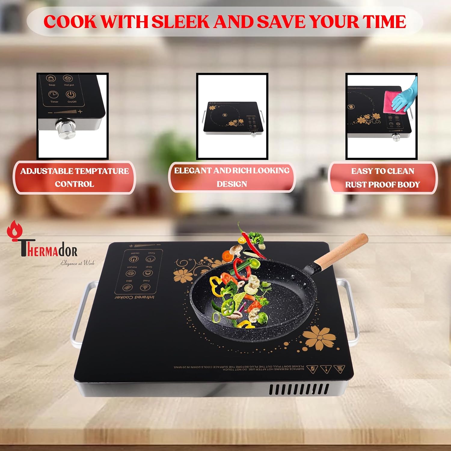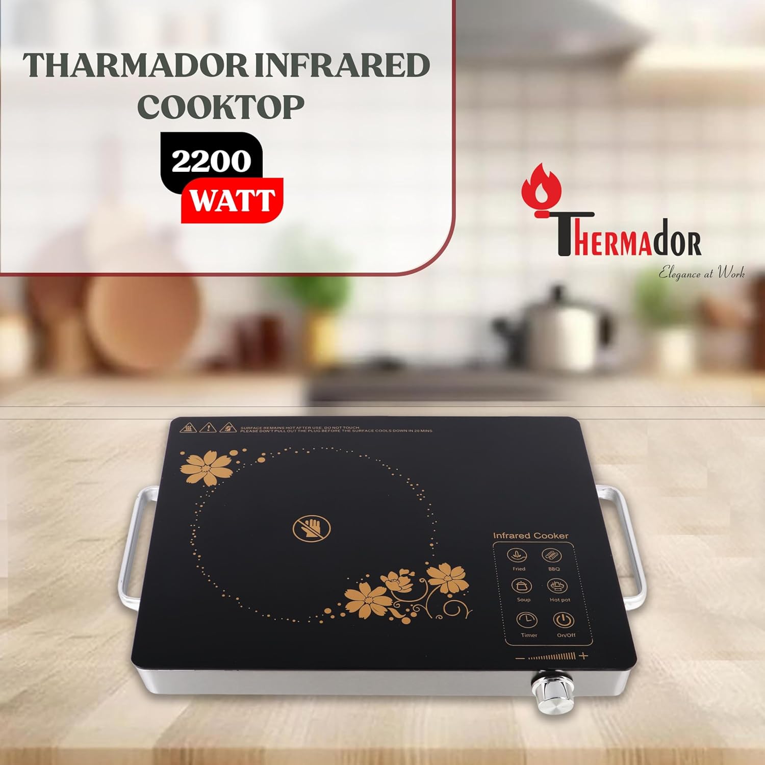 Thermador Classic 2200 Watt Infrared Cooktop with Crystal Glass & Touch Panel | 4 Pre set cooking Modes | Stir-fry | BBQ | Hot Pot | Steam | 60°C to 600°C | Digital time & Watt display