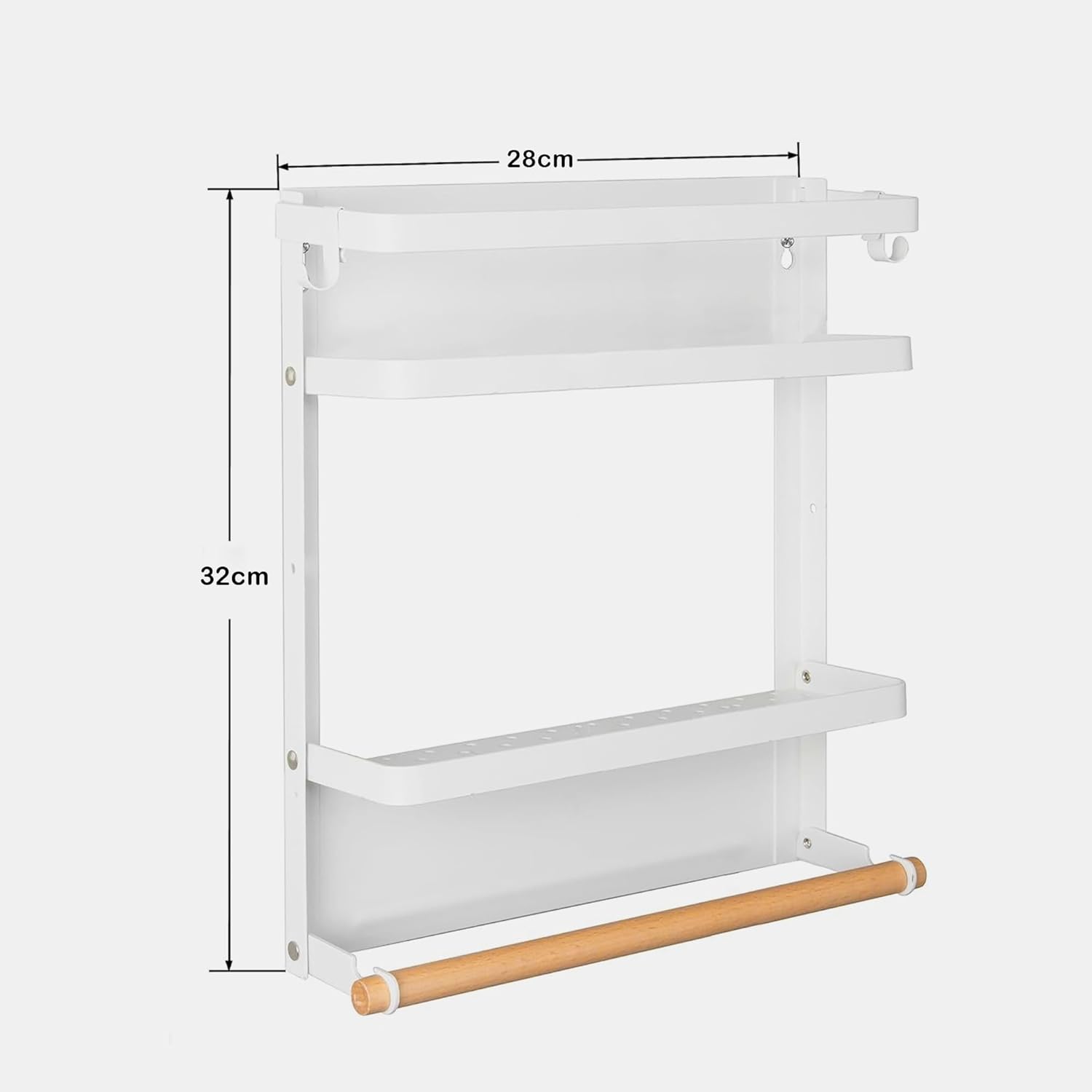 ✅ Package Contains – (Set of 1) Magnetic Shelf Organizer | Color – White | Material – Iron & Wood | Product Dimensions – 28x8x32 cm