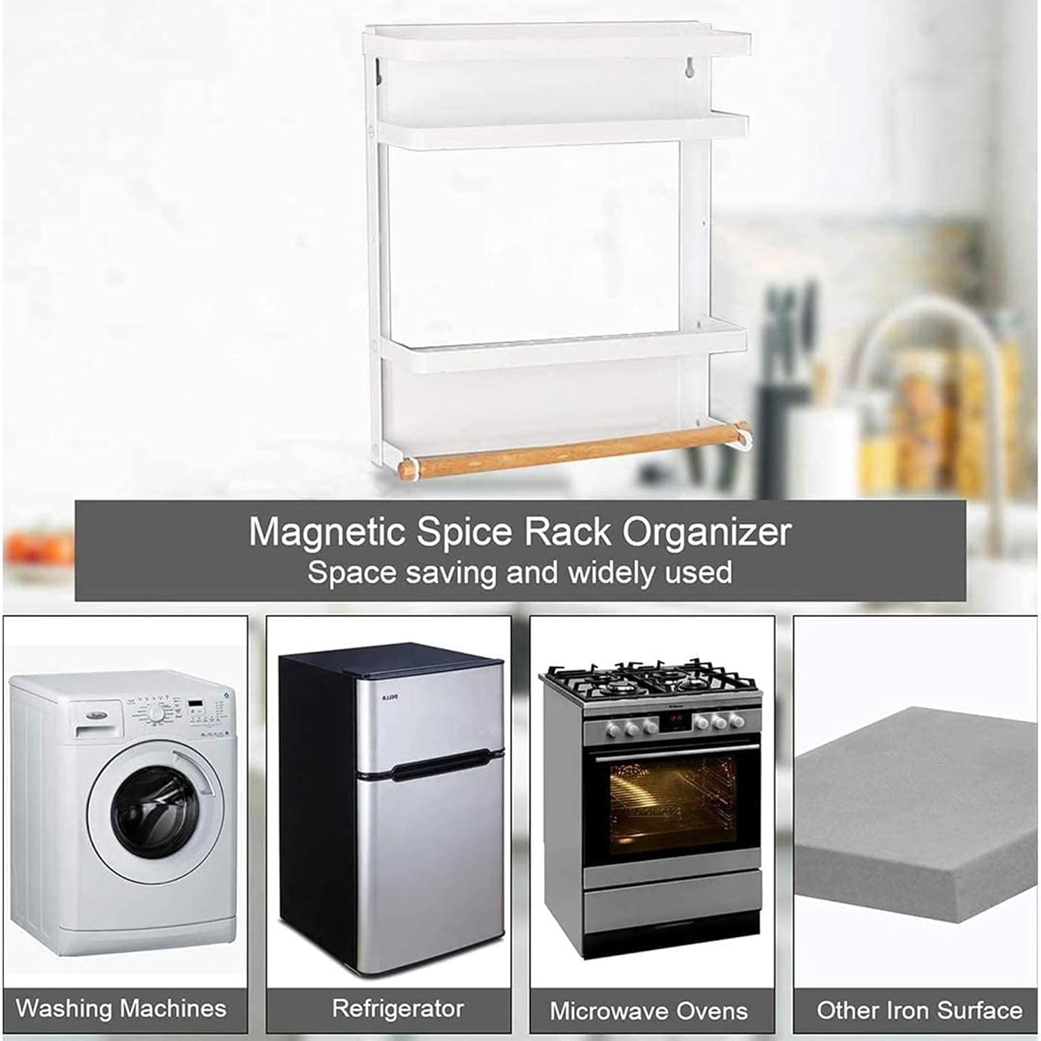 ✅ Reduces countertop clutter – This magnetic spice box storage shelf allows you to store spices and small kitchen items securely on your fridge, which frees up valuable counter space for other tasks.
