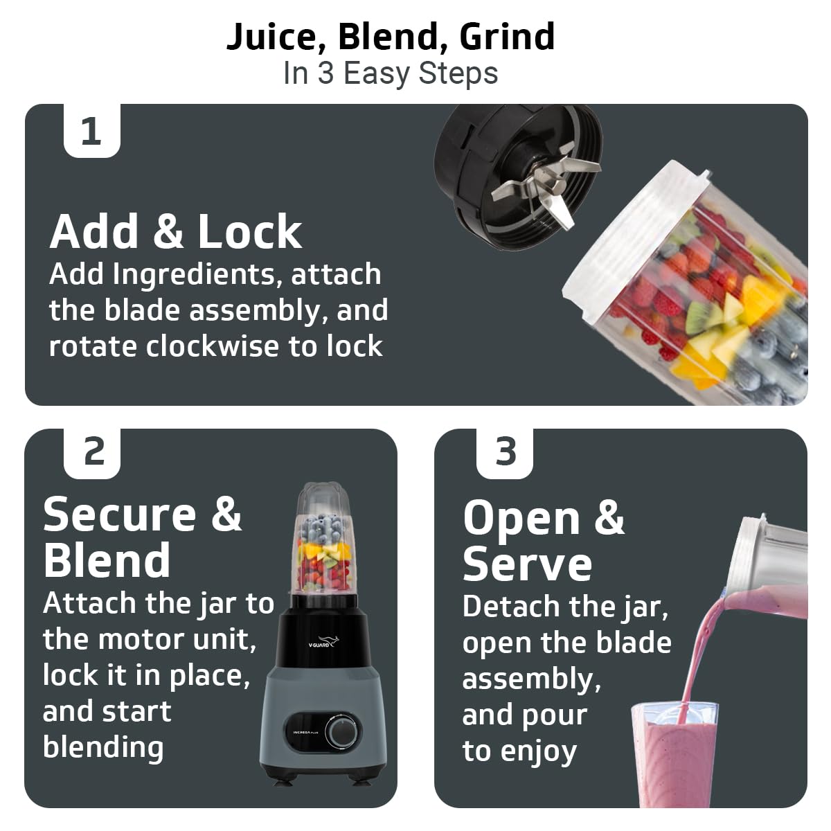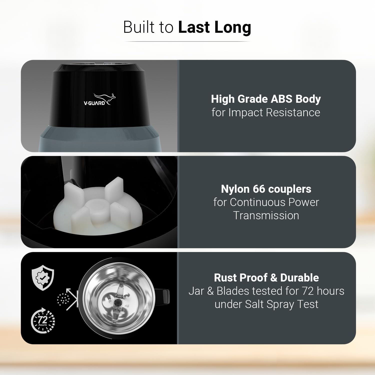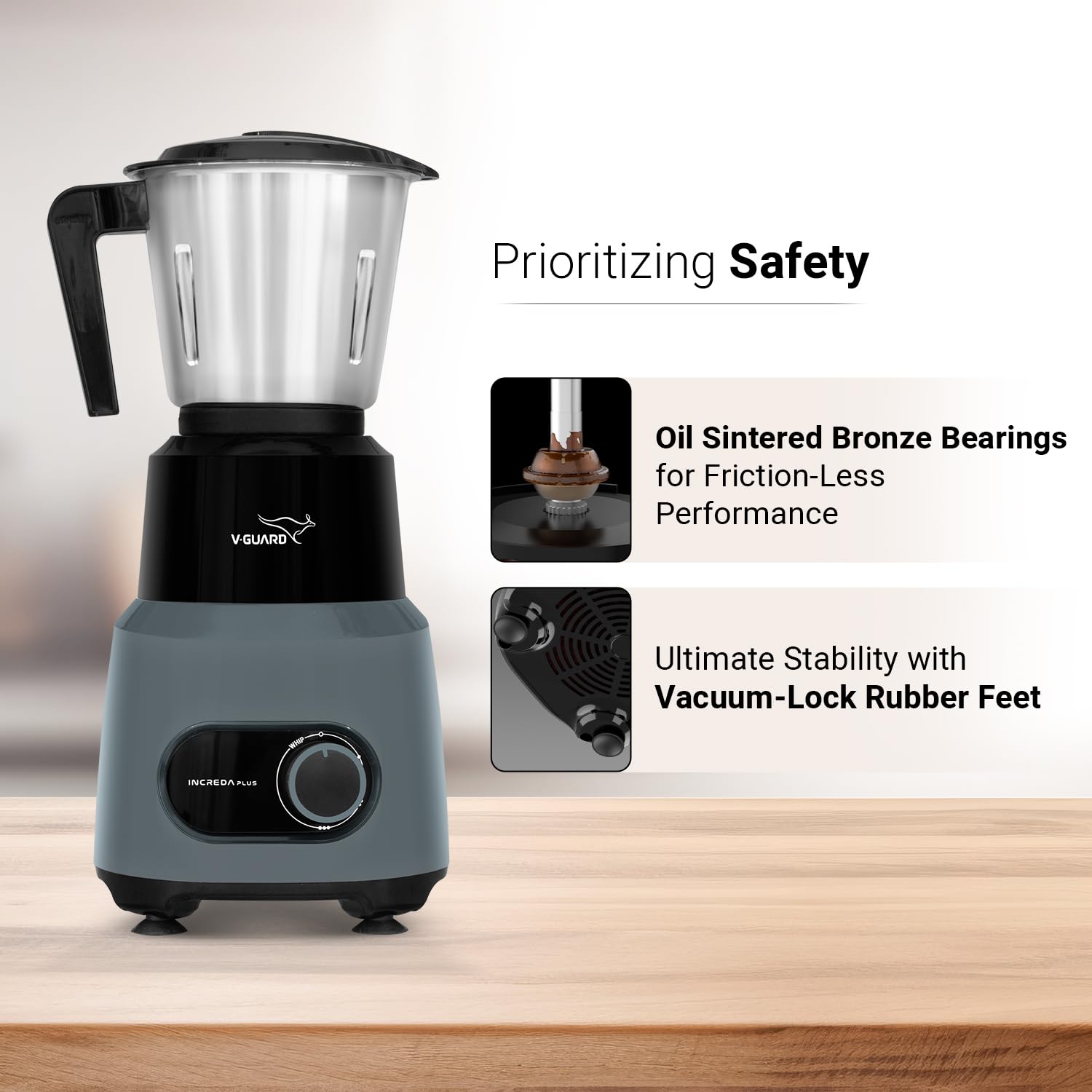 POWER-PACKED SPINMASTER MOTOR: The V-Guard Increda Plus Mixer Grinder features a powerful 500 W motor with a speed of up to 20,500 RPM, enabling quick and efficient juicing, blending and grinding for a wide range of ingredients, making cooking faster and easier.