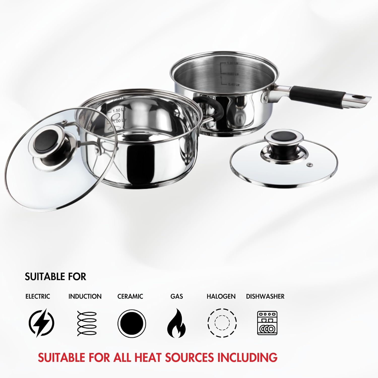 πππππ πππππππ : Tempered glass lids with steam release vent accelerate cooking, saving time and energy.