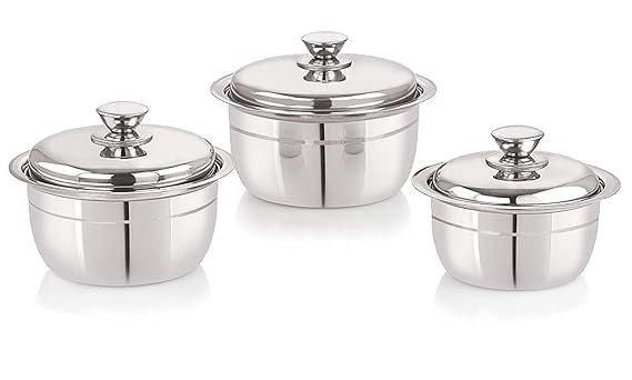 A dinner set is always a necessary item when it comes to any household. This stainless steel dinner set from Neelam 101 pieces of dinnerware that includes 6 pcs Dinner Plate, 6 pcs Buffet Plates, 6 pcs Small Halwa Plate, 6 pcs Big Halwa Plate, 6 pcs Small Katori, 6 pcs Big Katori, 6 pc Glasses, 6 pcs Royal Glasses, 6 pcs Tea Spoon, 6 pcs Baby Spoon, 6 pcs Baby Fork, 6 pcs Fruit Fork, 6 pcs Spoon Set, 3 pcs Serving Spoon, 3 pcs Serving Bowl, 2 pcs Curry Bowl, 2 pc Curry Bowl Lid, 1 pc Kadai, 1 pc Parat, 1 pc Steel Pawali, 1 pc Puri dabba, 1 pc Jug, 2 pc Salt & Pepper Container, 1 pc Sandsi/Pakkad, 1 pc Chipya, 1 Rice Tray, 1 pc Tea Strainer, 1 Pc Peeler and 1 pc Knife. Despite that, stainless steel has a lure of its own, dinner sets in stainless steel are proudly displayed in many homes. The durability and malleability of steel are two factors that make it so diverse and popular
