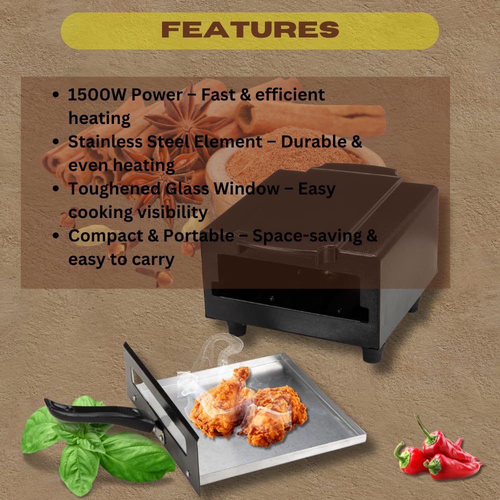 🔥 Powerful 1500W Stainless Steel Heating – Ensures quick, even heating for efficient cooking, grilling, roasting, and baking.