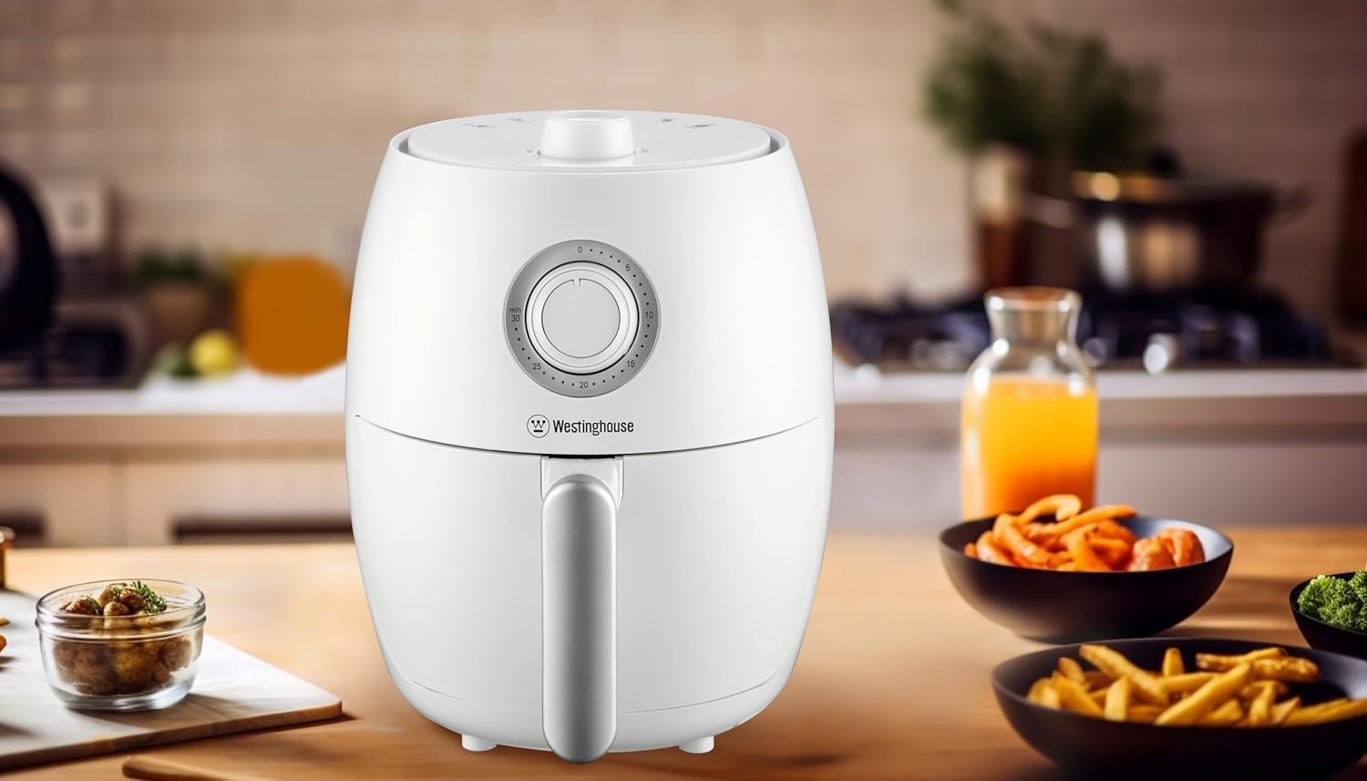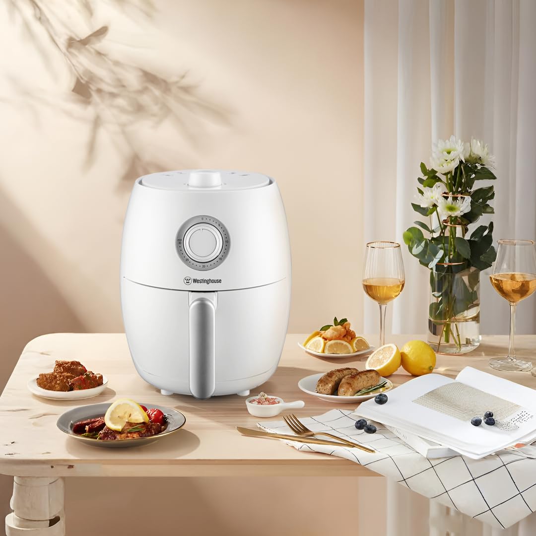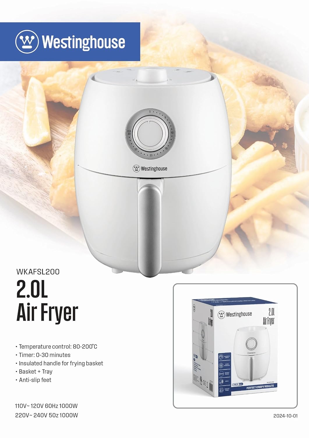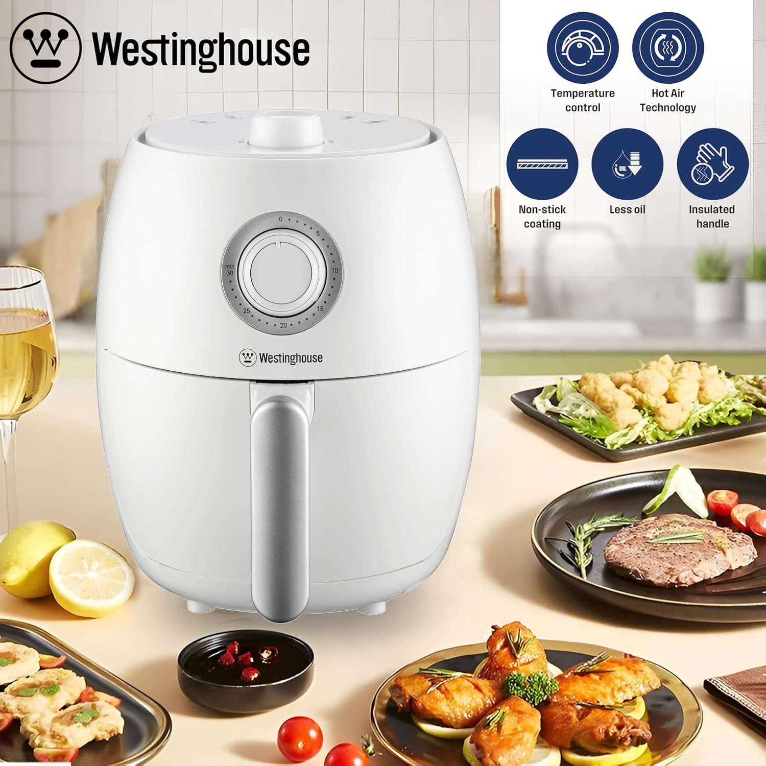 Westinghouse Simple Life 1000W Air Fryer | 2.0L Capacity | Adjustable Temp 80-200°C | 0-30 Min Timer | Insulated Handle for Safe Use | Compact Design, Non-Stick Basket & Tray | 2-Year Warranty