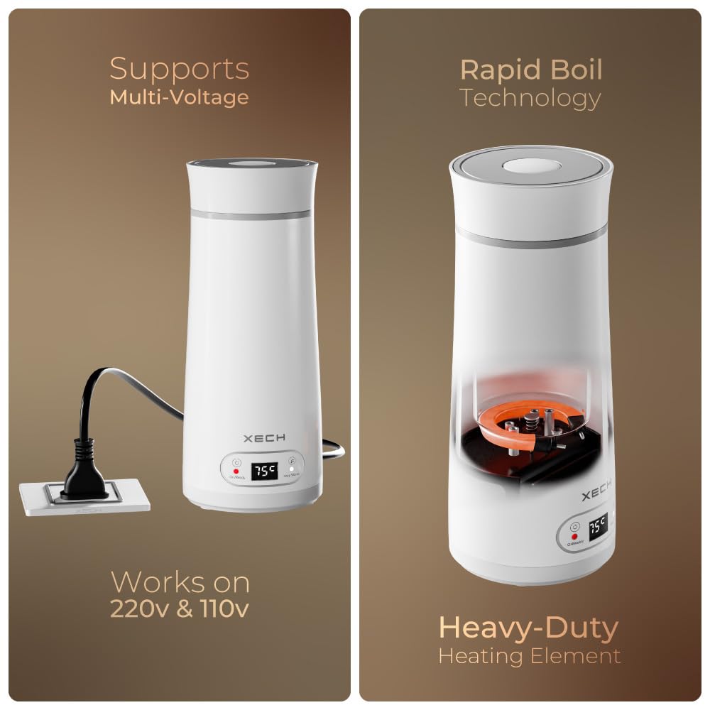 RAPID BOIL TECHNOLOGY – XECH Hydroboil – Electric Water Bottle is a portable electric kettle for travelling, that is shaped like a bottle with a powerful 300W heating element that can boil water within 2-3 minutes