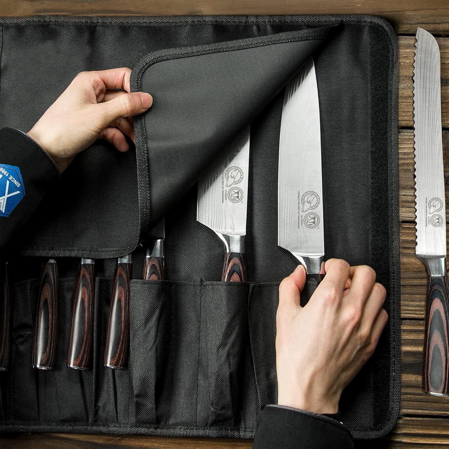 High quality canvas build: crafted with care by professionals, this knife roll is made from high-quality materials to last you a really long time.Additional cover flap and magic tape ensures your knives have extra protection and remain safely in your bag.
