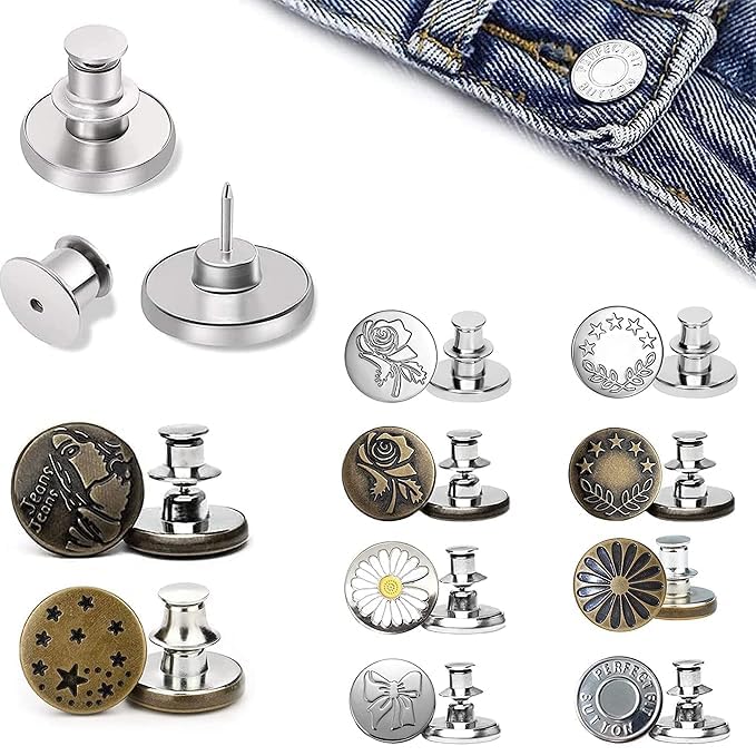 ✅ Fix Jeans Waist Instantly : These button pins are very easy to use on jeans. No sewing, no tools, Extend or Reduce an Inch to Any Pants Waist in Seconds.