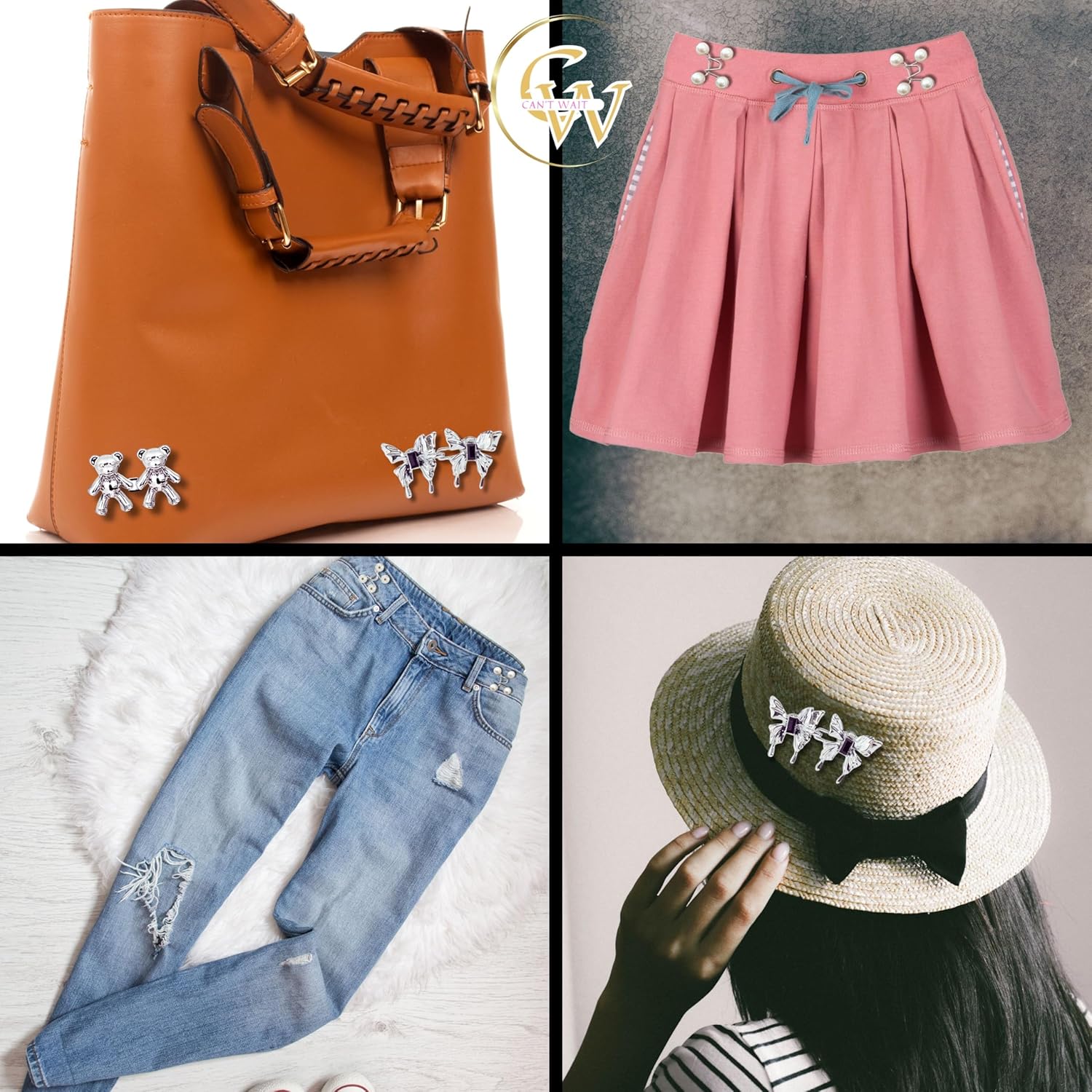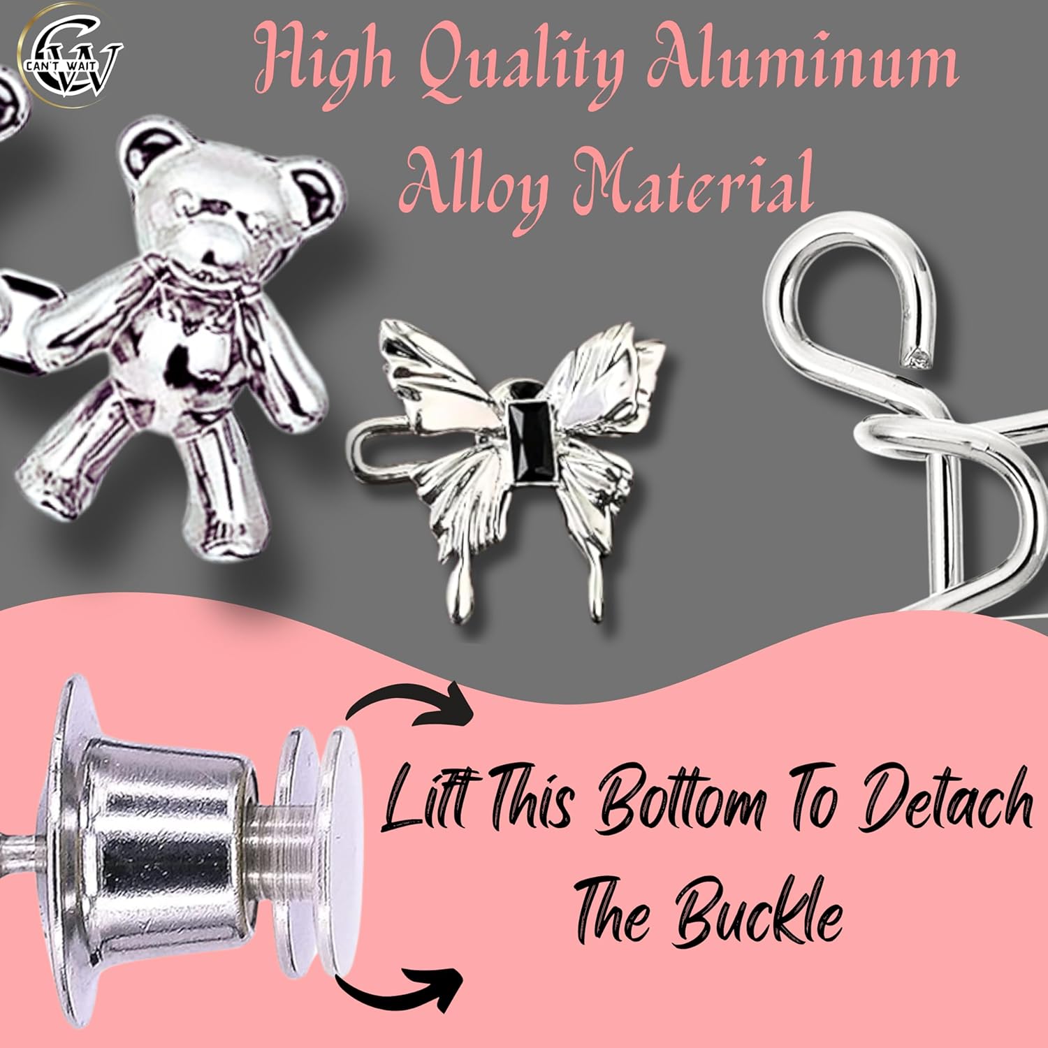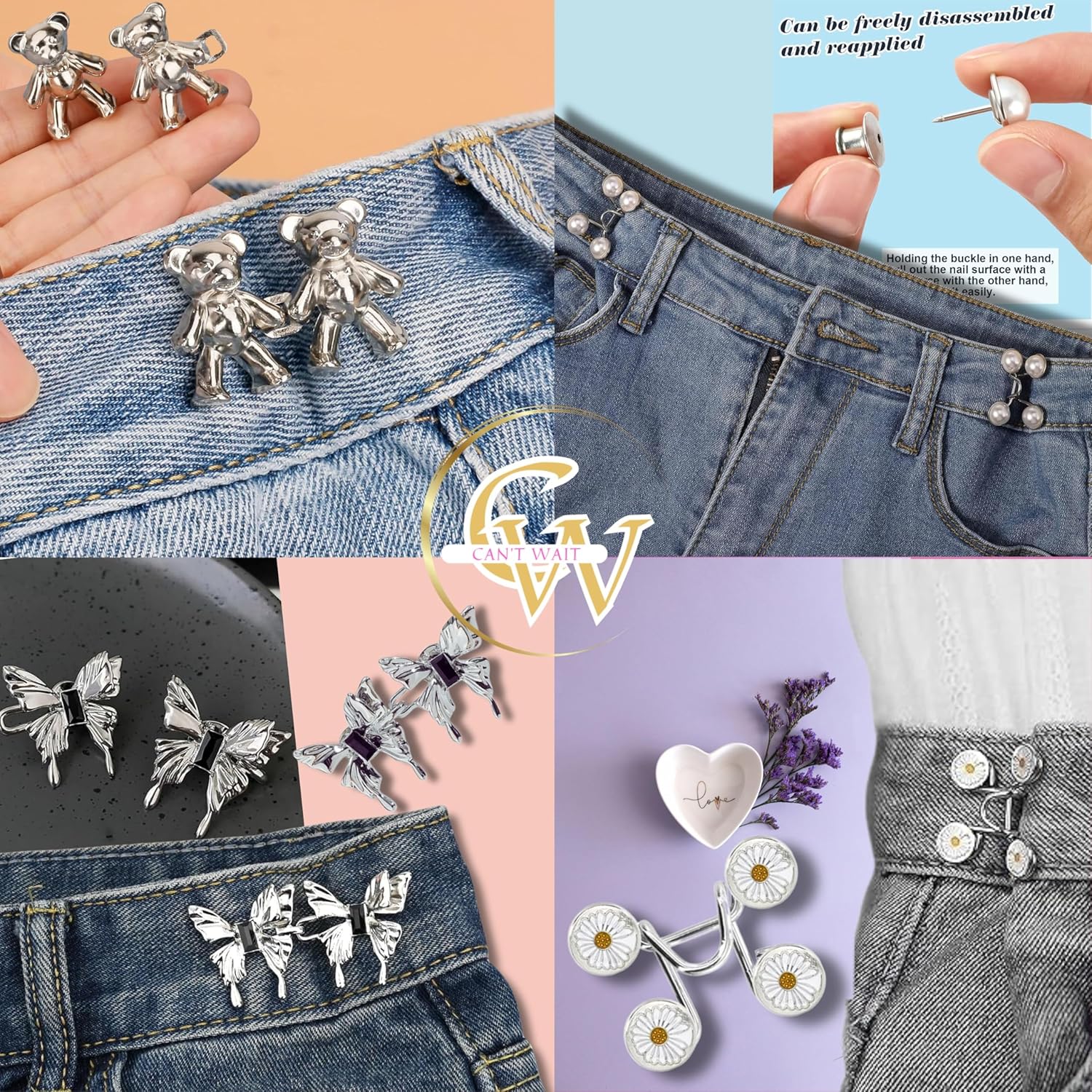 Can’t Wait Set of 4, Adjustable Buttons for Loose Jeans Pant Tightener Clip Butterfly Teddy Bear Jeans Clip Detachable Waist Buckles for Loose Jeans Jeans Fitting Clips for Women